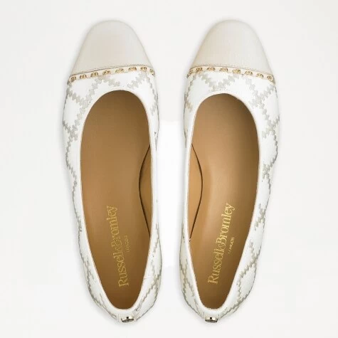 Fusing the resurgence of chic geometric patterns, Boulevard2 will add a stylish flare to any look. Crafted in Italy from soft white grained calf leather with intricate beige stitching, this pair has been detailed with a subtle gold chain trim. Finished with breathable leather lining, our new luxurious pump promises comfort with every step.