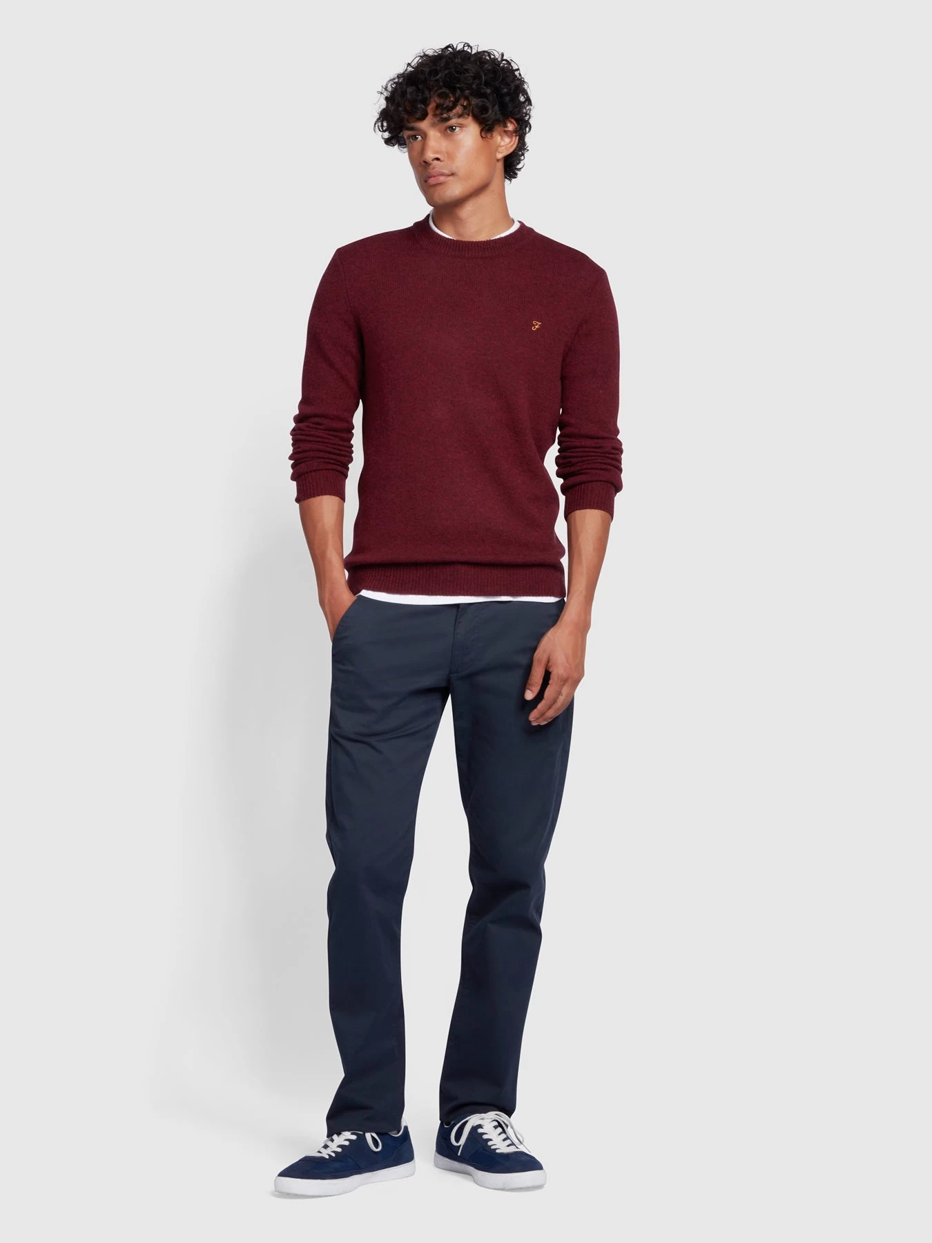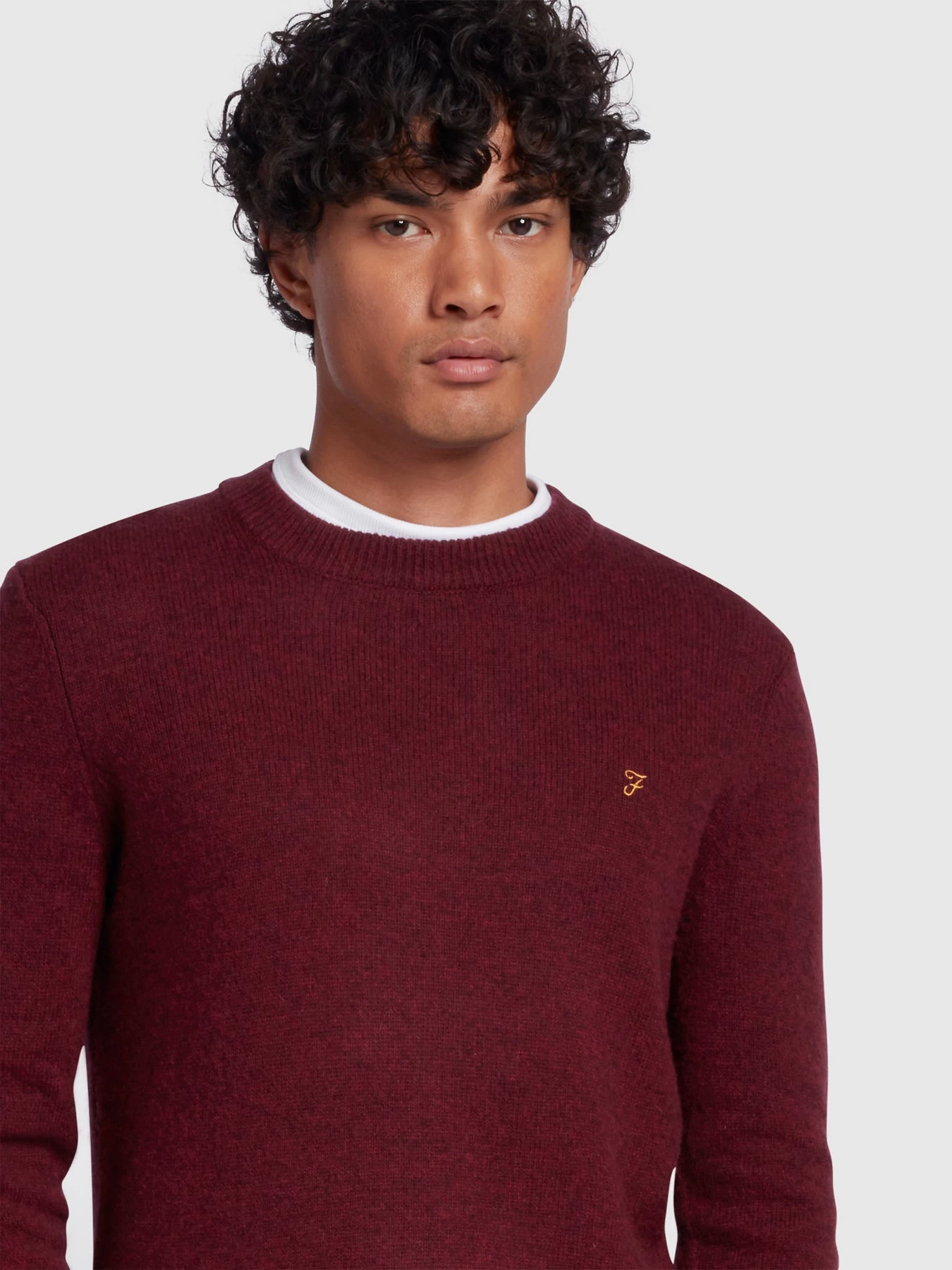 Birchall Slim Fit Crew Neck Lambswool Jumper In Farah Red