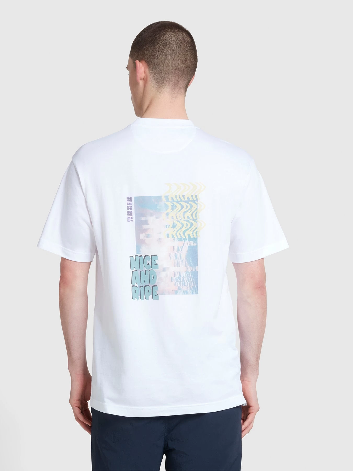 Made from 100% organic cotton, the Blond Farah Logo Print T-Shirt offers both style and sustainability. Designed with a relaxed fit and short sleeves, it features a printed Farah logo on the chest and a ‘NICE AND RIPE’ abstract graphic printed on the back.