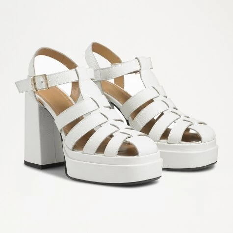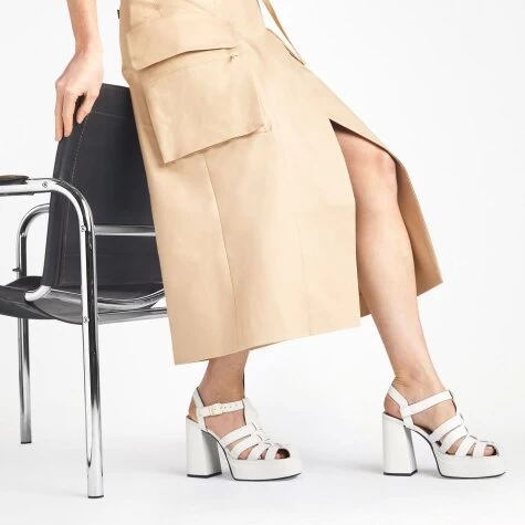 Get onboard with the nautical trend by opting for Miley, a fisherman platform sandal. Crafted with care in Italy from white grained leather, the chunky platform heel gives instant height while the caged fisherman upper straps ensure comfort and security. The adjustable ankle strap features a golden buckle. It’s an ideal piece for carefree days and offers versatility when worn with different looks.