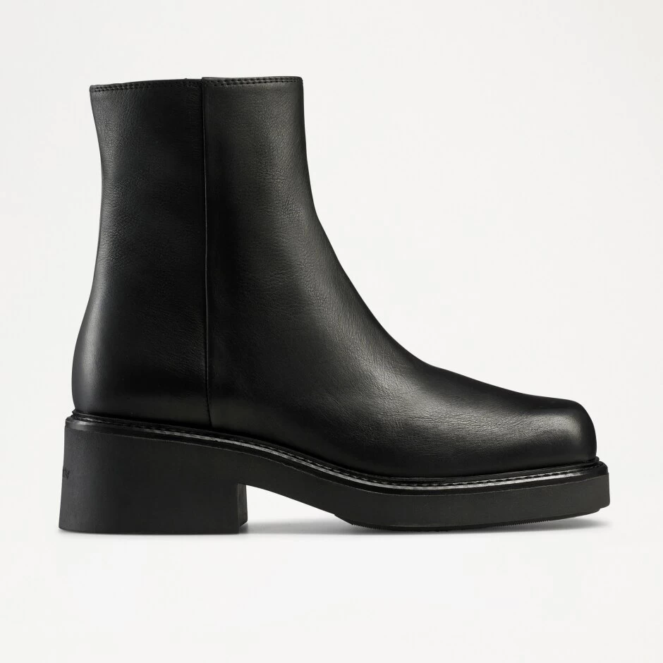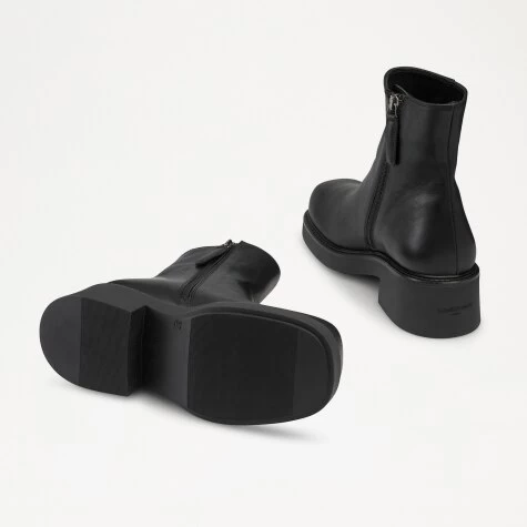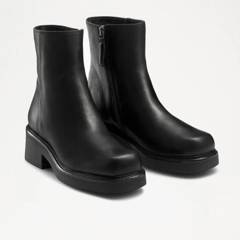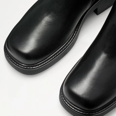 A subtle reinterpretation of the iconic biker boot, Underground is this season’s classic everyday biker boot. Ideal for casual or weekend-ready ensembles, it’s inspired by the edgy lines of a typical biker boot silhouette, but with a cleaner finish. Crafted in Italy from soft black calf leather, the style sits on a flat through sole complete with a heel and stitch detail welt. The piece is leather lined and shaped with a trending square toe.