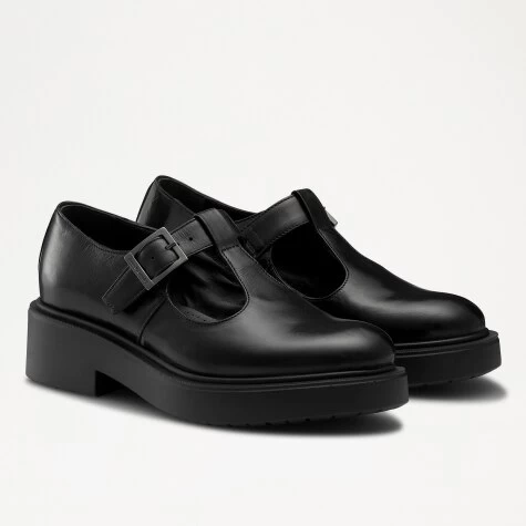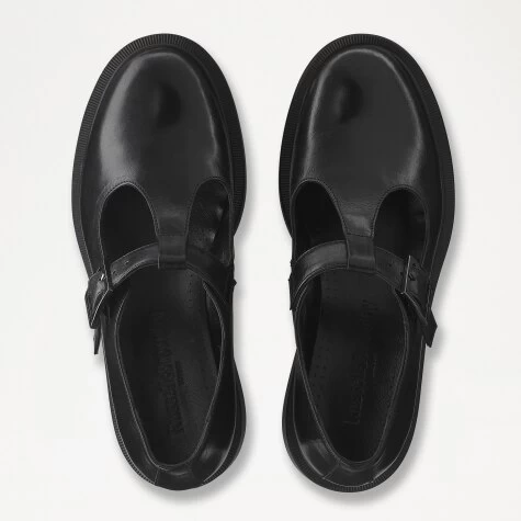Homework is a classic leather T-bar shoe with an irresistibly retro appeal. Crafted in Italy from supple black calf leather, this nostalgic shoe has been set on a bouncy rubber cloud sole, offering comfort and durability in equal measure. Cleanly finished with a rounded toe, it comes with an adjustable T-bar strap adorned with a silver logo-detail buckle. Its oversized sole makes it set for trend-led looks.