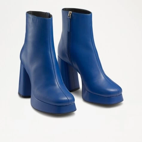 The ultimate take on the 70’s platform ankle boot, Finesse offers a statement-making silhouette set to elevate any ensemble. Crafted from eye-catching metallic blue nappa leather, this style is further enhanced by an extreme platform sole and striking square toe. Sure to turn heads, this comfortable platform boot has been finished on a durable outsole with a secure zip fastening that will walk you from dawn to dusk with ease.