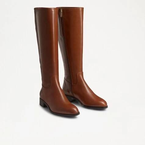 Master this season’s love for elevated boots with Master, our clean silhouette riding boot. Expertly crafted in Italy from supple tan-hued calf leather, this iconic design is inspired by equestrian heritage and updated with a modern polished finish. Made in Italy, the style is shaped with a soft almond toe and visually divided into two distinct sections thanks to its stitch-detail panelling. The style comes with a grooved stack heel and full inside zip fastening featuring a gold logo-branded zip pull.
