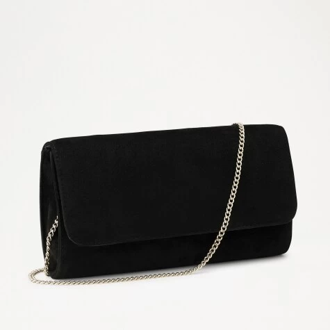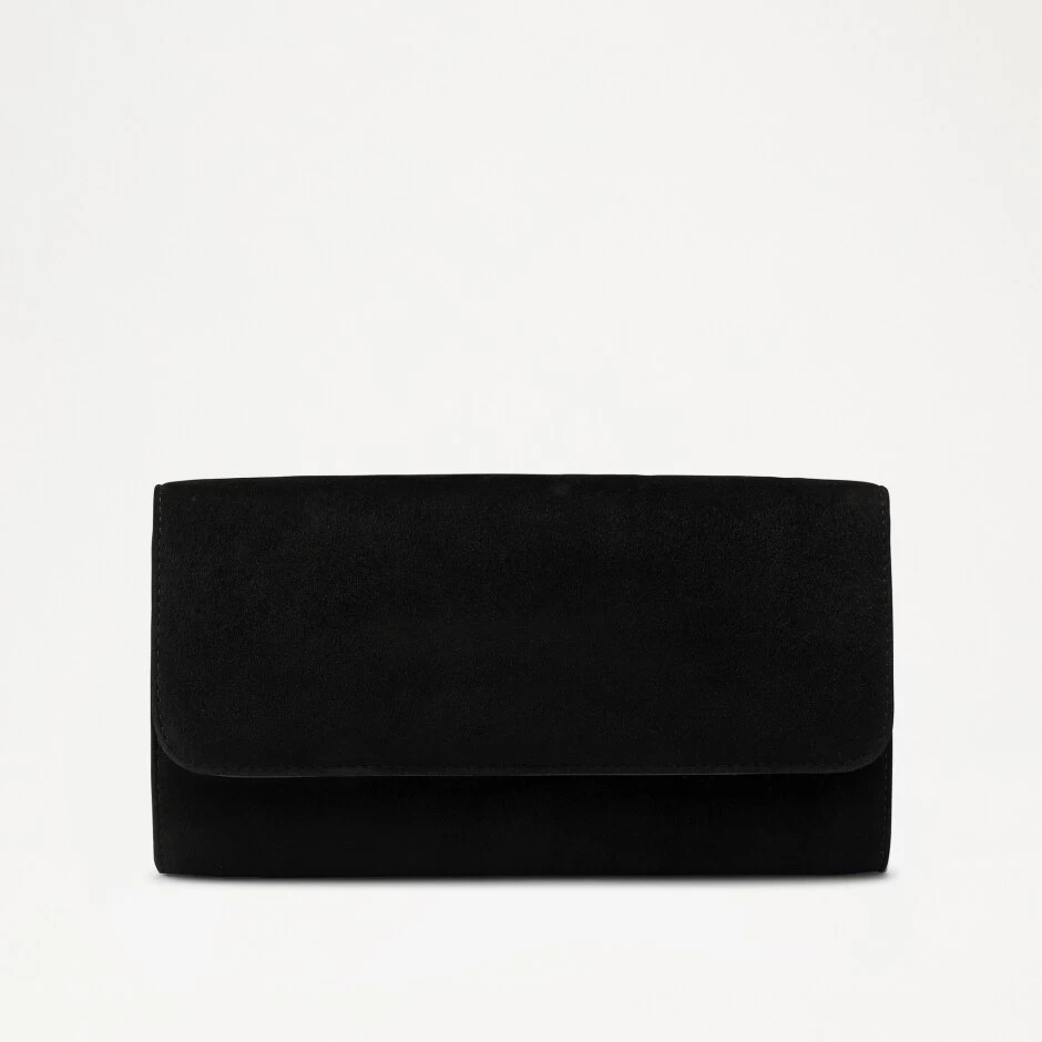 Grab hold of our staple clutch bag 85 Clutch. Luxuriously crafted from smooth black suede, this foldover style is secured by a magnetic popper closure ensuring all your belongings remain safe. Boasting an optional jewellery-inspired chain strap, this style perfectly dresses up any look making it ideal for all events and occasions.