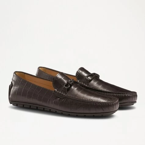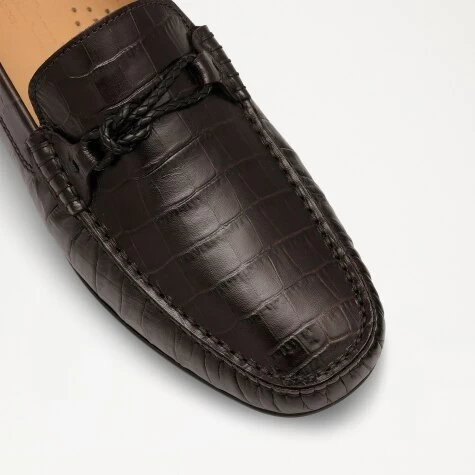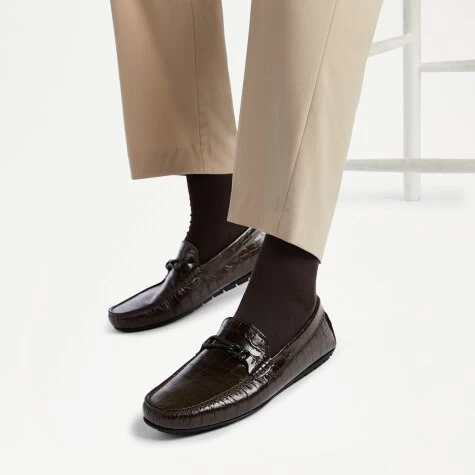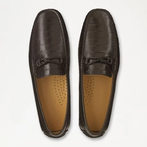 Starting life in a small town just outside of Florence, Spyder-Tie is a classic driver with a premium finish. Handcrafted from brown crocodile-effect leather, this timeless silhouette has been upgraded with a striped grosgrain ribbon trim and metal hardware. Set on a quintessential rubber studded driver sole. Spyder-Tie is a staple style for any modern wardrobe.