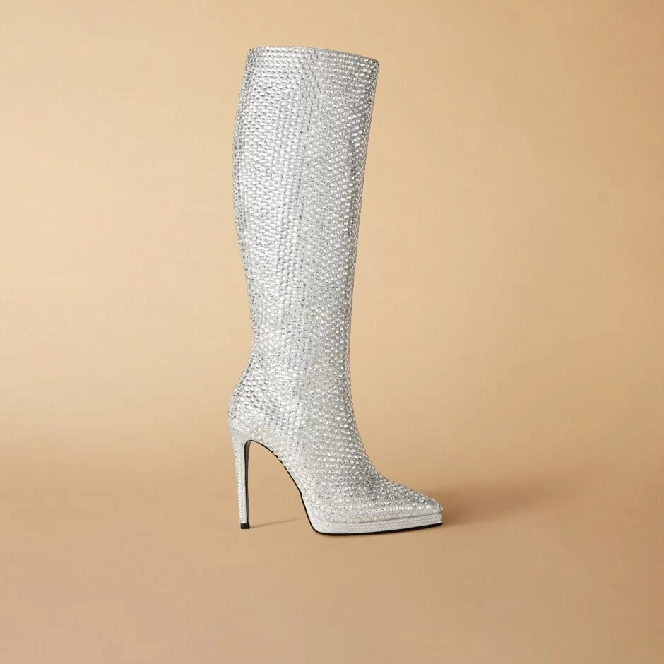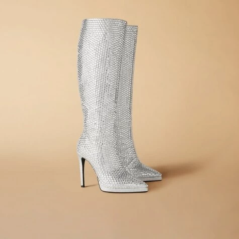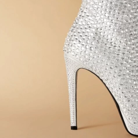 The Limited Edition Spotlight boot has been artisanally crafted in Italy from premium silver Italian suede and hand studded with over 8,000 Preciosa® crystals. Sleek, dazzling and powerful; it’s the perfect statement silhouette to celebrate in this Christmas season. With 100% of the retail selling price, less VAT, being donated to Smart Works Charity, shine with the pride of making a lasting impact on other women’s lives. Please be aware: Our Preciosa® crystal styles are all unique in design and can be susceptible to wear and tear. Smart Works Charity No: 1080609