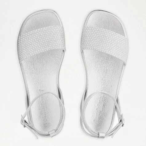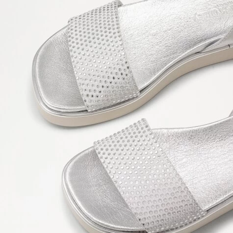 Add a touch of sparkle to your summer with style Miami. Channelling the glamour of its namesake city and carefully crafted in Italy from soft silver nappa leather, this style culminates in a gem embellished upper, certain to glisten with every step. Set on a flatform sole with a cushioned footbed for all day comfort, this striking sandal is a perfect warm weather wardrobe addition.