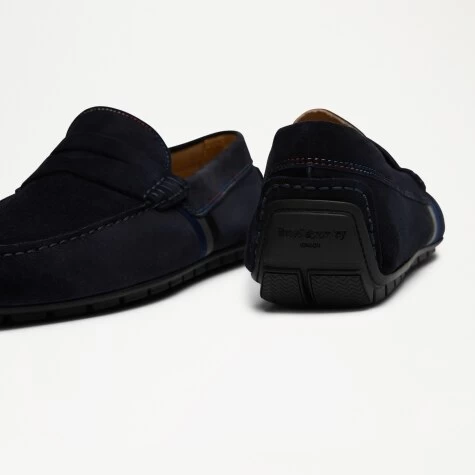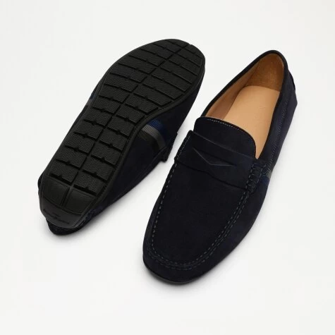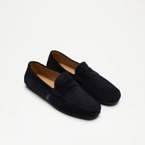 Sartorial Soft Wear effortlessly combines a classic driving sole with a smart penny loafer aesthetic. Crafted from specially selected navy suede, this style has been detailed with multi-coloured contrast stitch and exclusive Russell & Bromley grosgrain trim. As comfortable as it is stylish, work this slip-on into your wardrobe with tailored shorts and casual shirt.