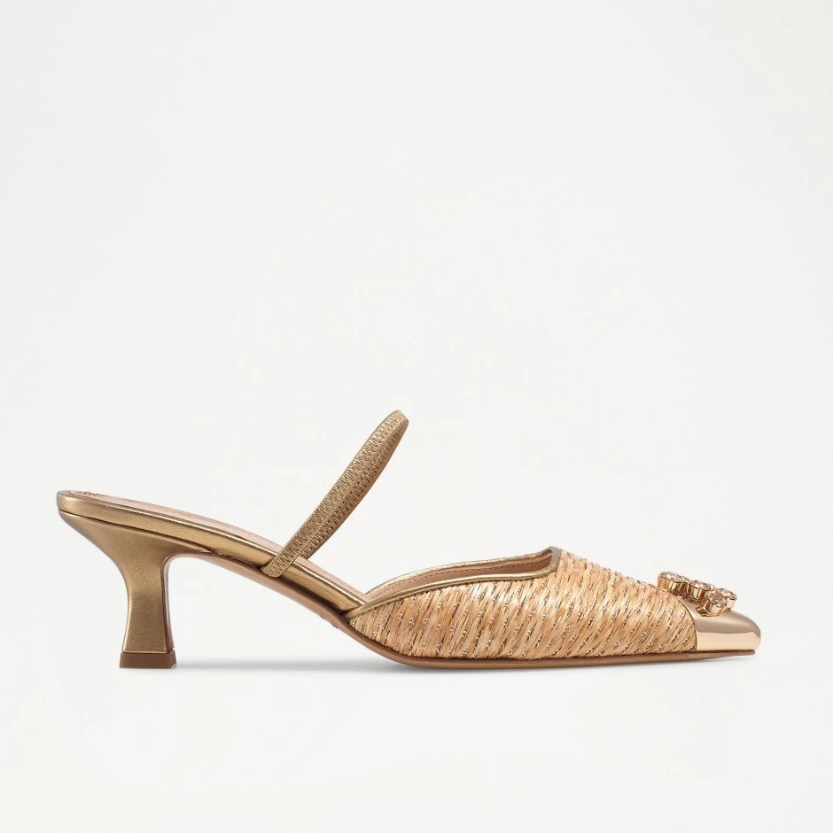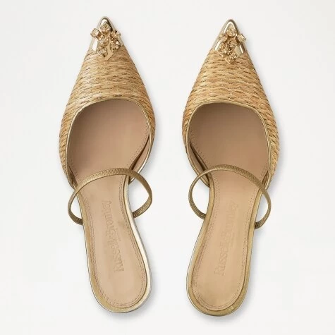 Evoking the classic hallmarks of the Y2K kitten heel trend, Midnight has been updated in a tweed canvas material with a gold thread detailing and a tonal crystal embellished trim. Drawing inspiration from our bestselling slingback, Fairytale, this style uploads the same elasticated sling-back strap, which can be worn around the heel, over the foot or tucked under the bottom of the shoe to give a mule effect. Offering comfort, support and the option to style your own way, with or without the perfectly coordinating bag, Midnight will fast become your go-to style.