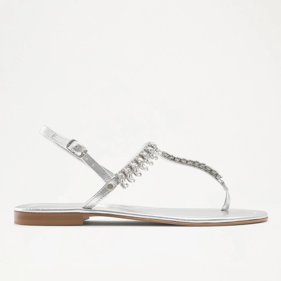 Add a touch of decadence to your summer attire with our crystal embellished two strap sandal, Crystal. Crafted from the finest silver calf leather, this luxurious silhouette has been detailed with a supportive buckle strap at the heel and a T-bar design adorned with sparkling crystals. Finished on a comfortable padded footbed and durable man-made sole, this standout style will add a touch of elegance to any ensemble.