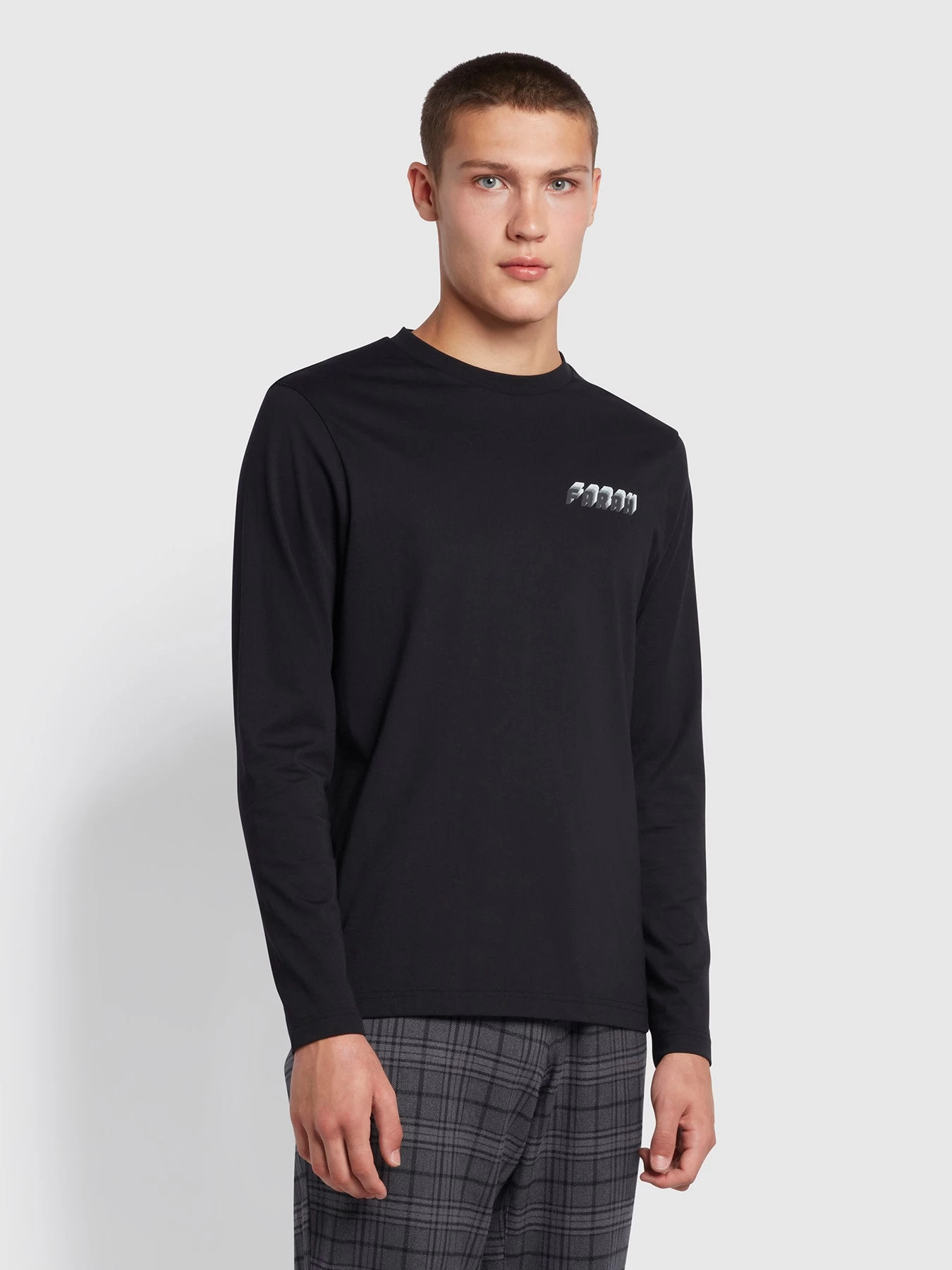 Farah Aspin Regular Fit Organic Cotton Graphic T-Shirt In Black
