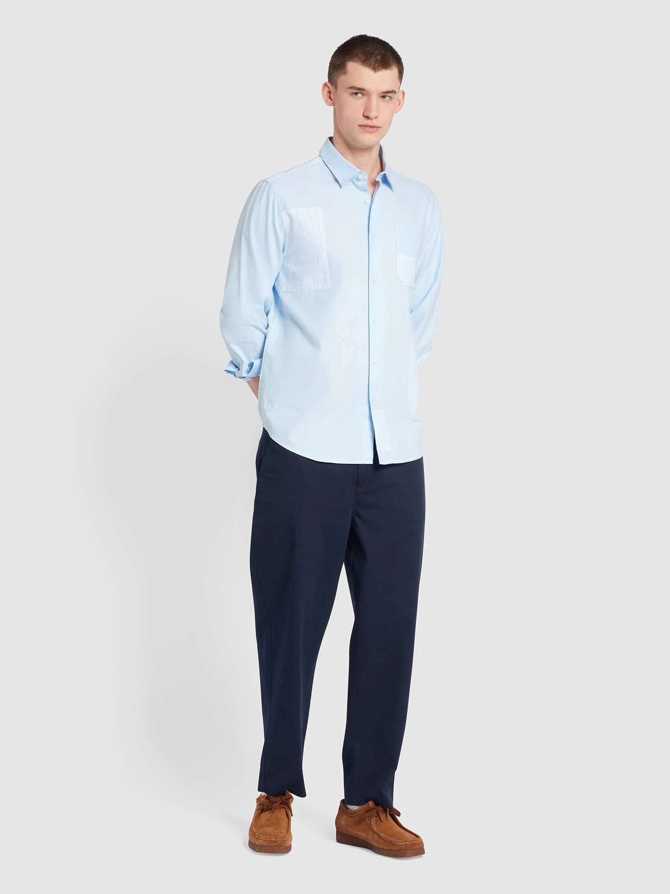 Farah Brewer Patchwork Relaxed Fit Organic Cotton Long Sleeve Shirt In Sky Blue