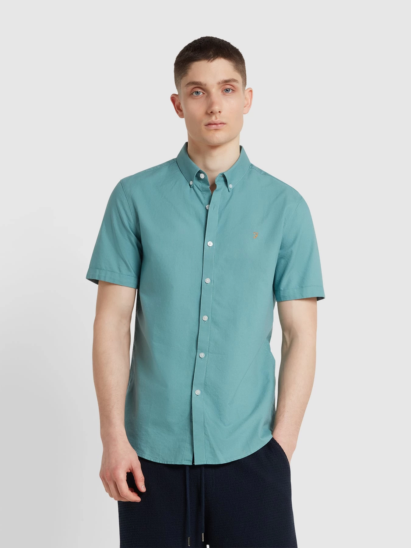 Expertly crafted from 100% organic cotton with a sleek slim fit, the Brewer Short Sleeve Shirt in Brook Blue offers both style and sustainability. With a smart button down front and collar, and a classic oxford weave, it’s the perfect addition to any wardrobe.