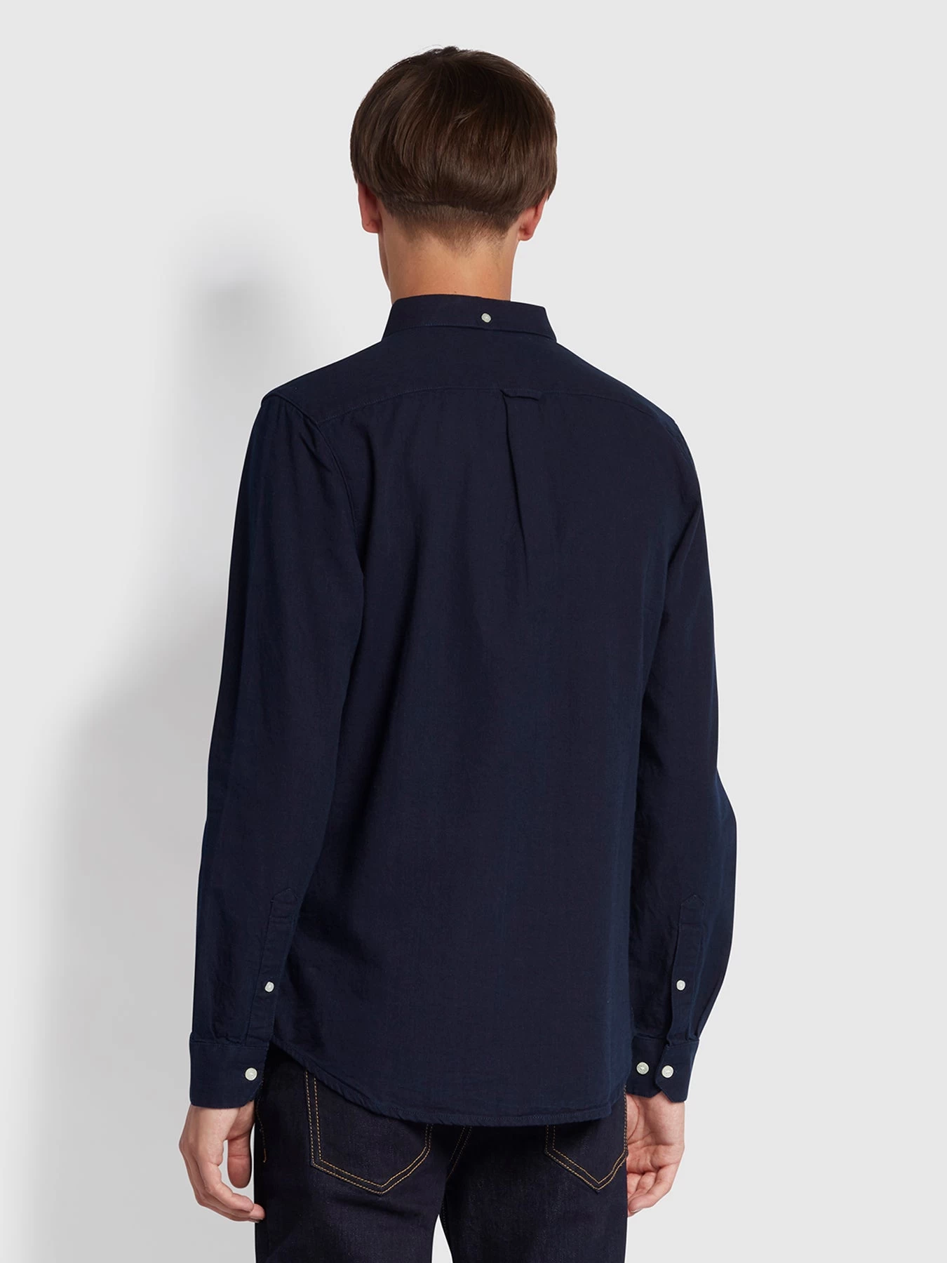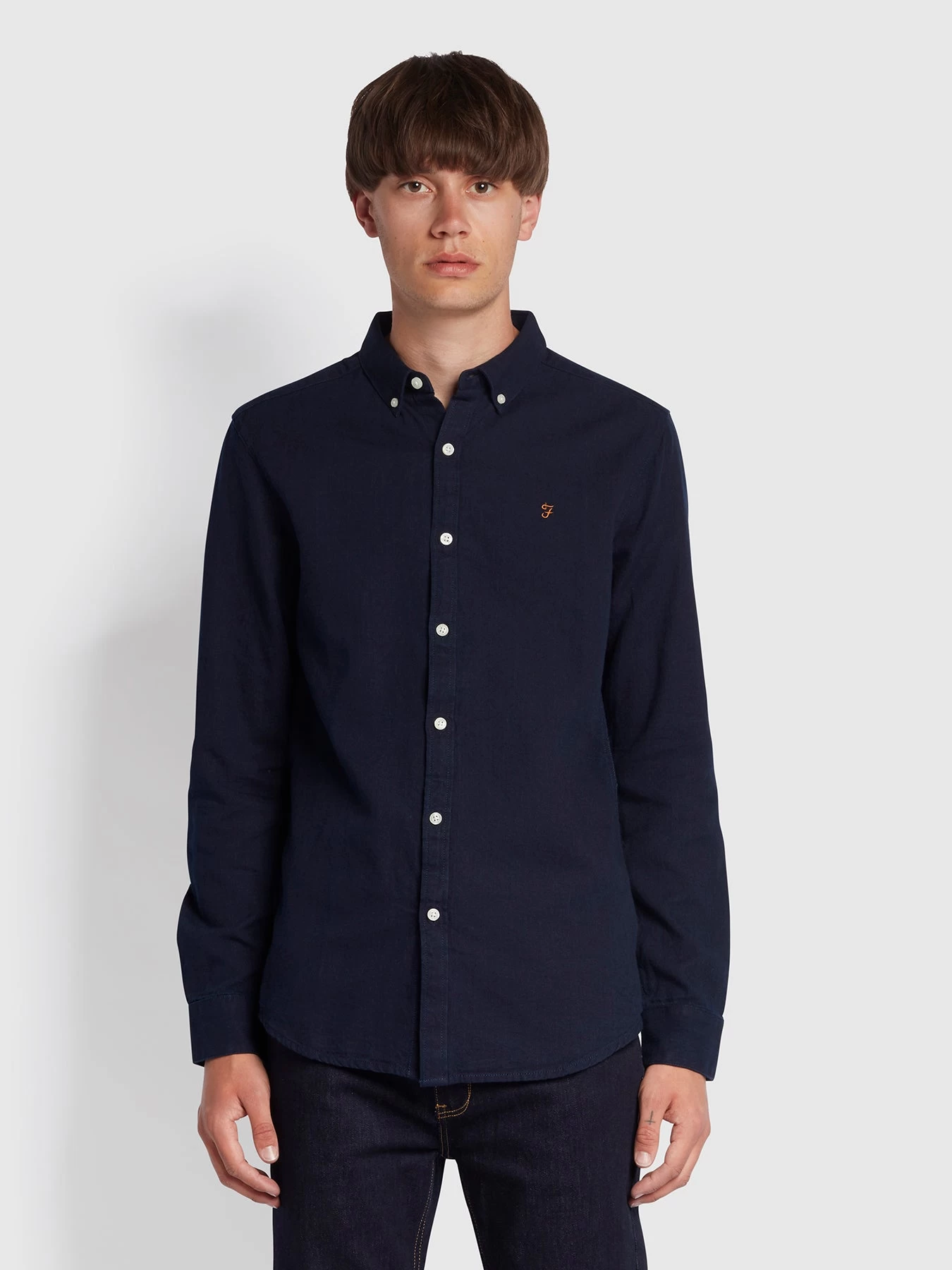 The Farah Brewer Check Oxford is a long sleeve, slim-fit shirt with a traditional button-down collar. Featuring a classic check in an Oxford-weave using 100% organic cotton with our signature gold Farah logo at the left chest, it’s available in Mid Indigo for a seasonal refresh.