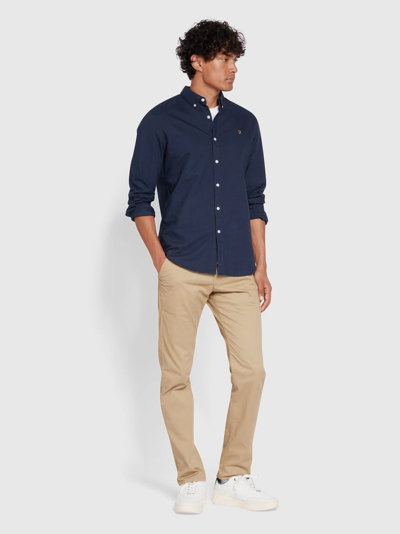 Farah Brewer Slim Fit Organic Cotton Oxford Shirt In Navy