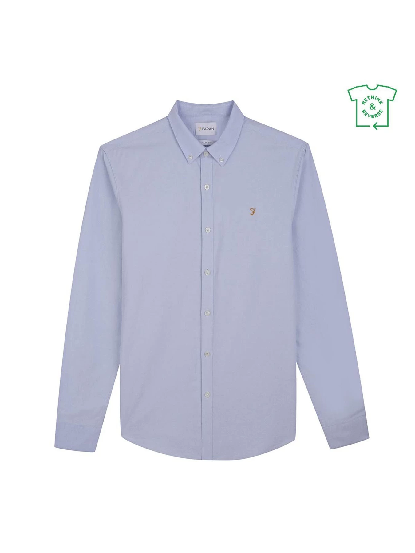 The Farah Brewer Oxford shirt is an essential, modern menswear classic. Constructed in an Oxford-weave and made from 100% organic cotton, the long sleeve, slim-fit design details a traditional button-down collar with our signature gold Farah logo at the left chest. Available in 11 core plus seasonal colours.