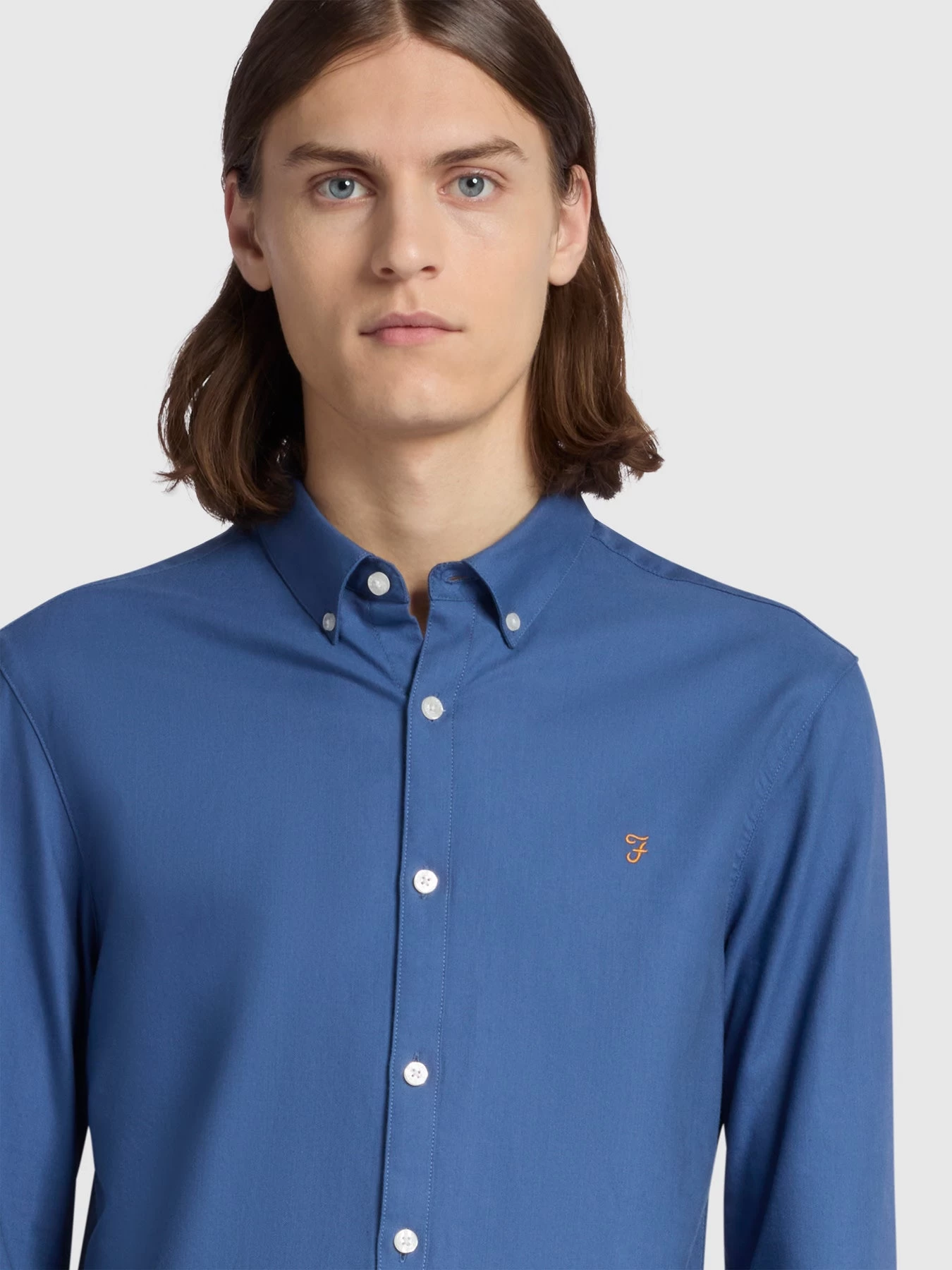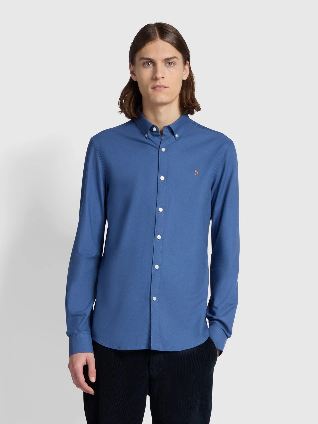 Farah Brewer Slim Fit Organic Cotton Oxford Shirt In Steel Blue