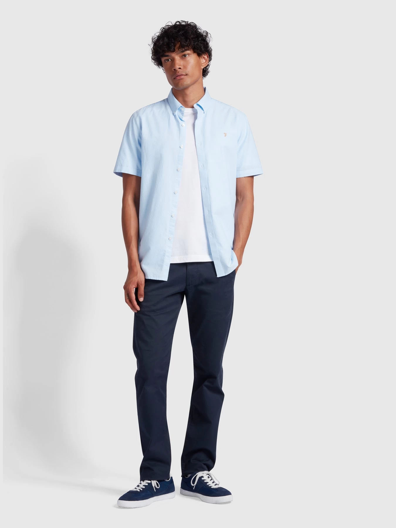 The Farah Brewer Oxford shirt is an essential, modern menswear classic. Constructed in an Oxford-weave and made from 100% organic cotton, the short sleeve, slim-fit design details a traditional button-down collar with our signature gold Farah logo at the left chest. Available in 11 core plus seasonal colours.