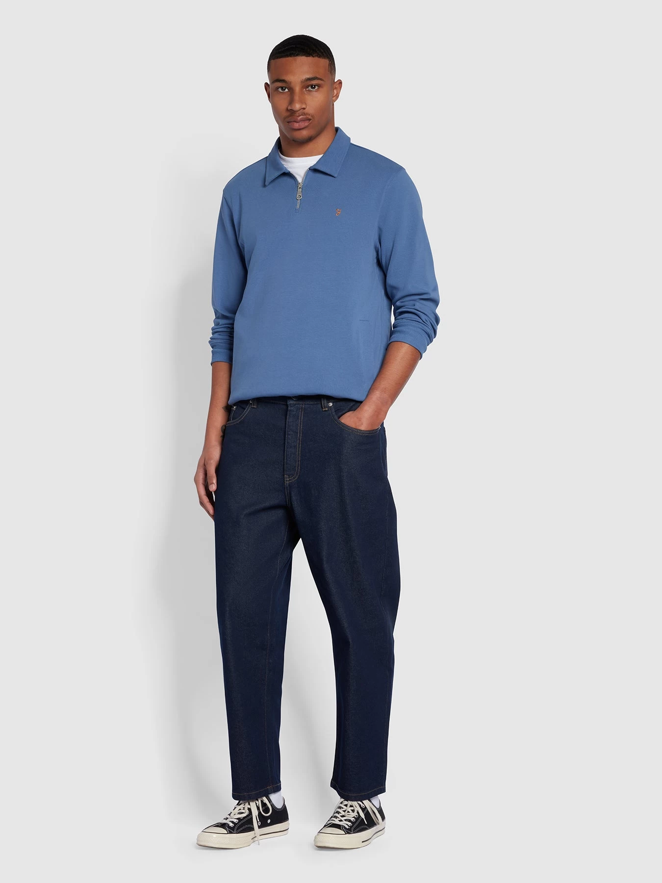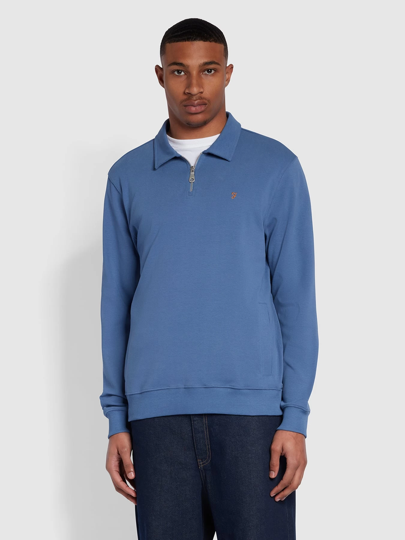 Farah Castell Regular Fit Quarter Zip Sweatshirt In Caribbean Blue