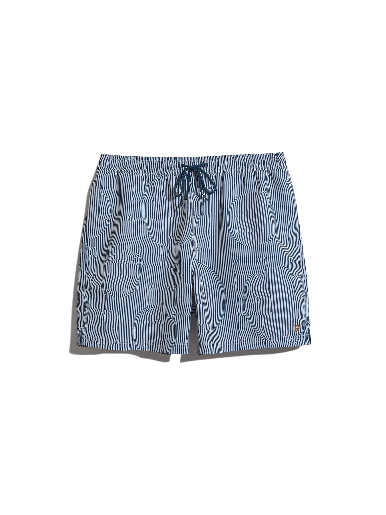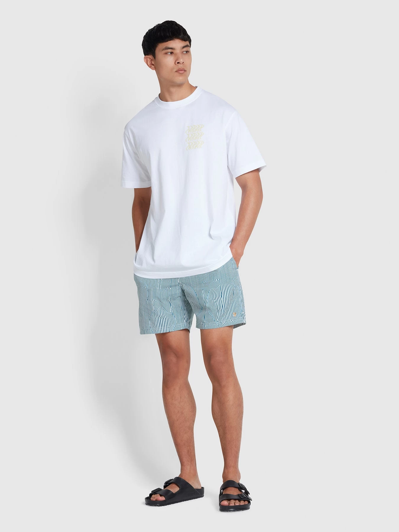 The Colbert Optical Print Swim Shorts are crafted from recycled polyester, making them both stylish and environmentally conscious. With a regular fit and drawstring fastening, they provide maximum comfort and a secure fit. Featuring an eye-catching optical illusion print, along with two side pockets and a back pocket, these shorts are perfect for a day at the beach or pool.