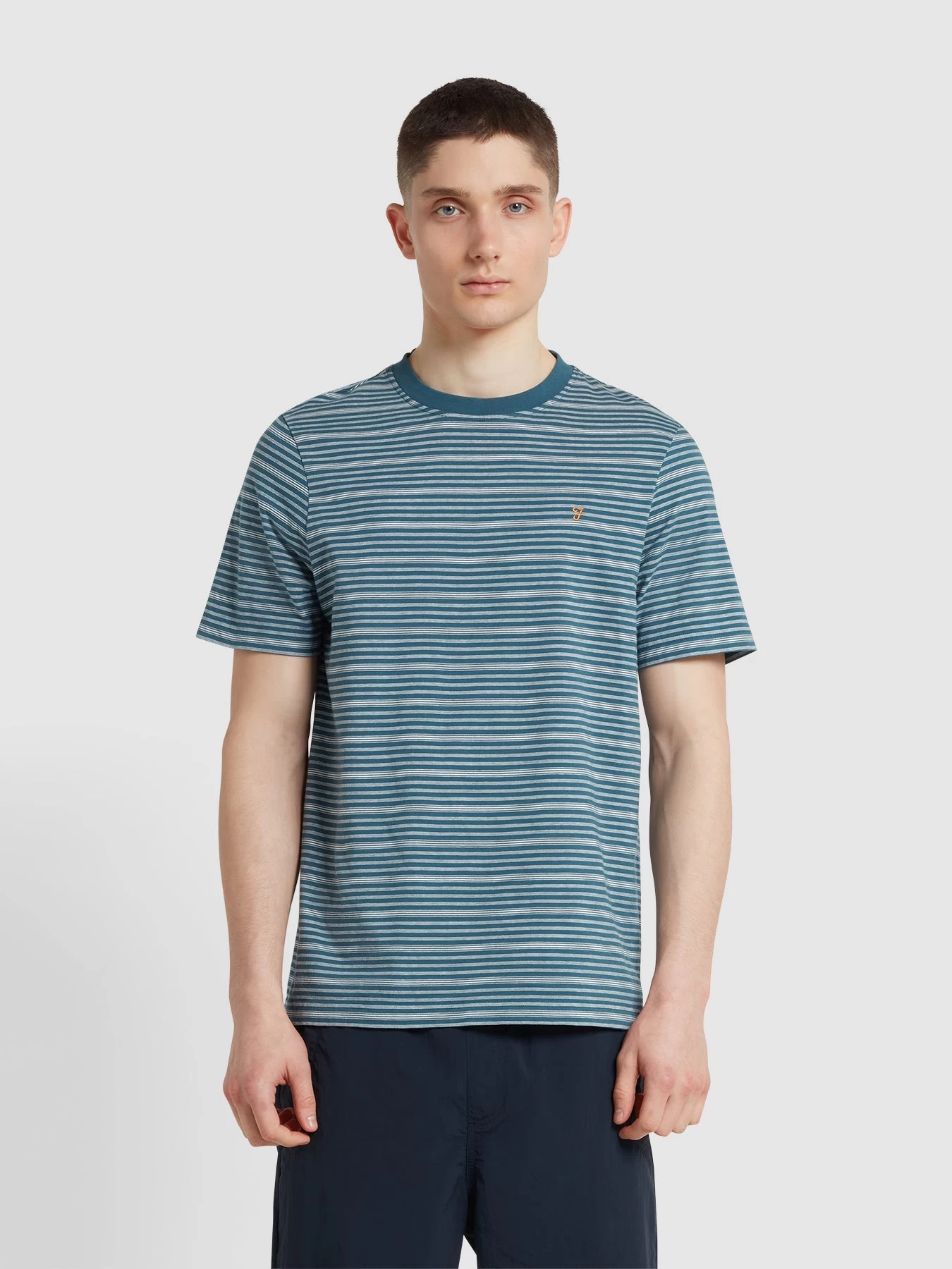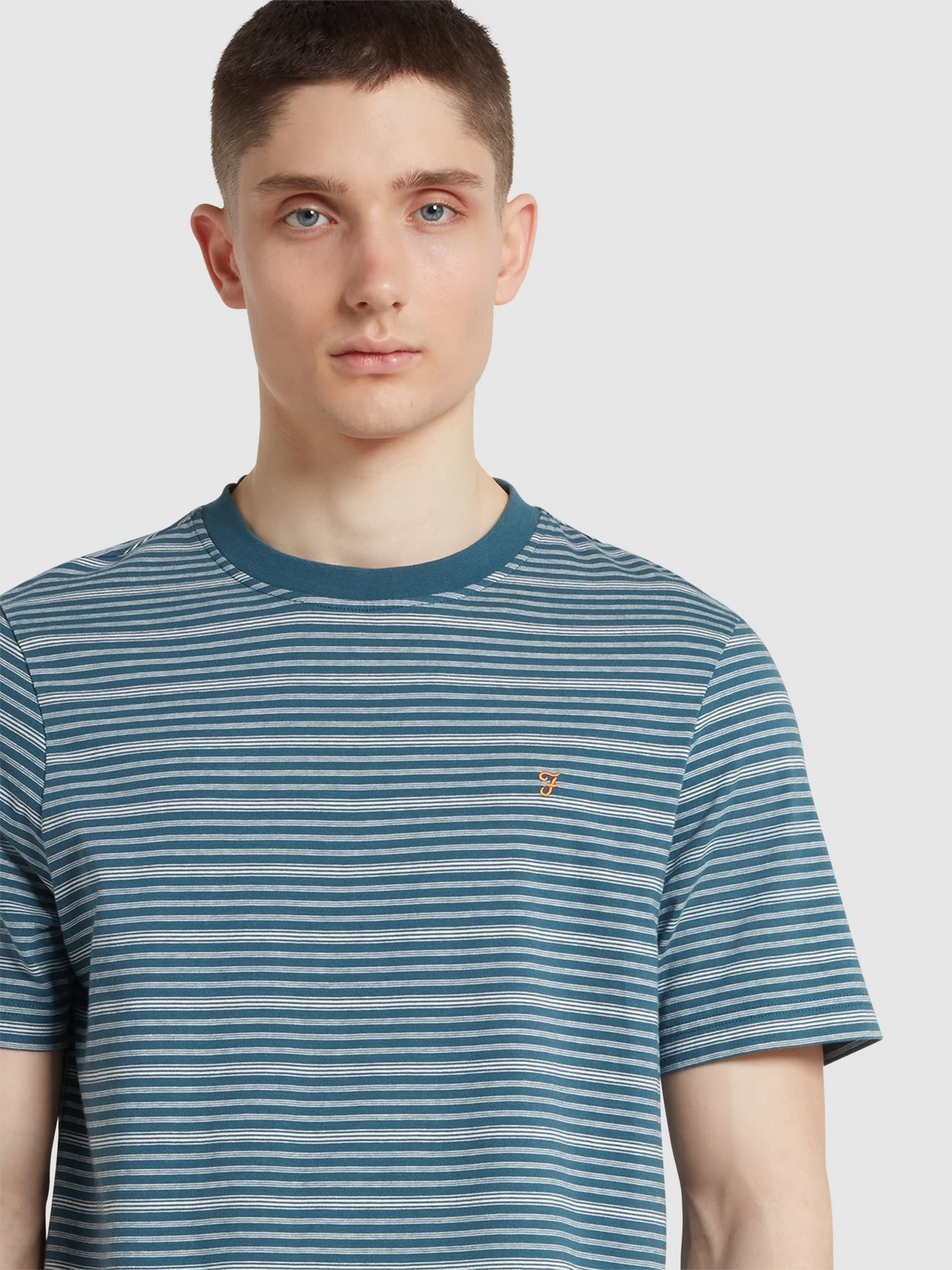 Made from 100% organic cotton, the Davis Regular Fit Stripe Print T-Shirt offers both style and sustainability. The short sleeve design and regular fit provide all-day comfort, while the stripe print adds a bold touch.