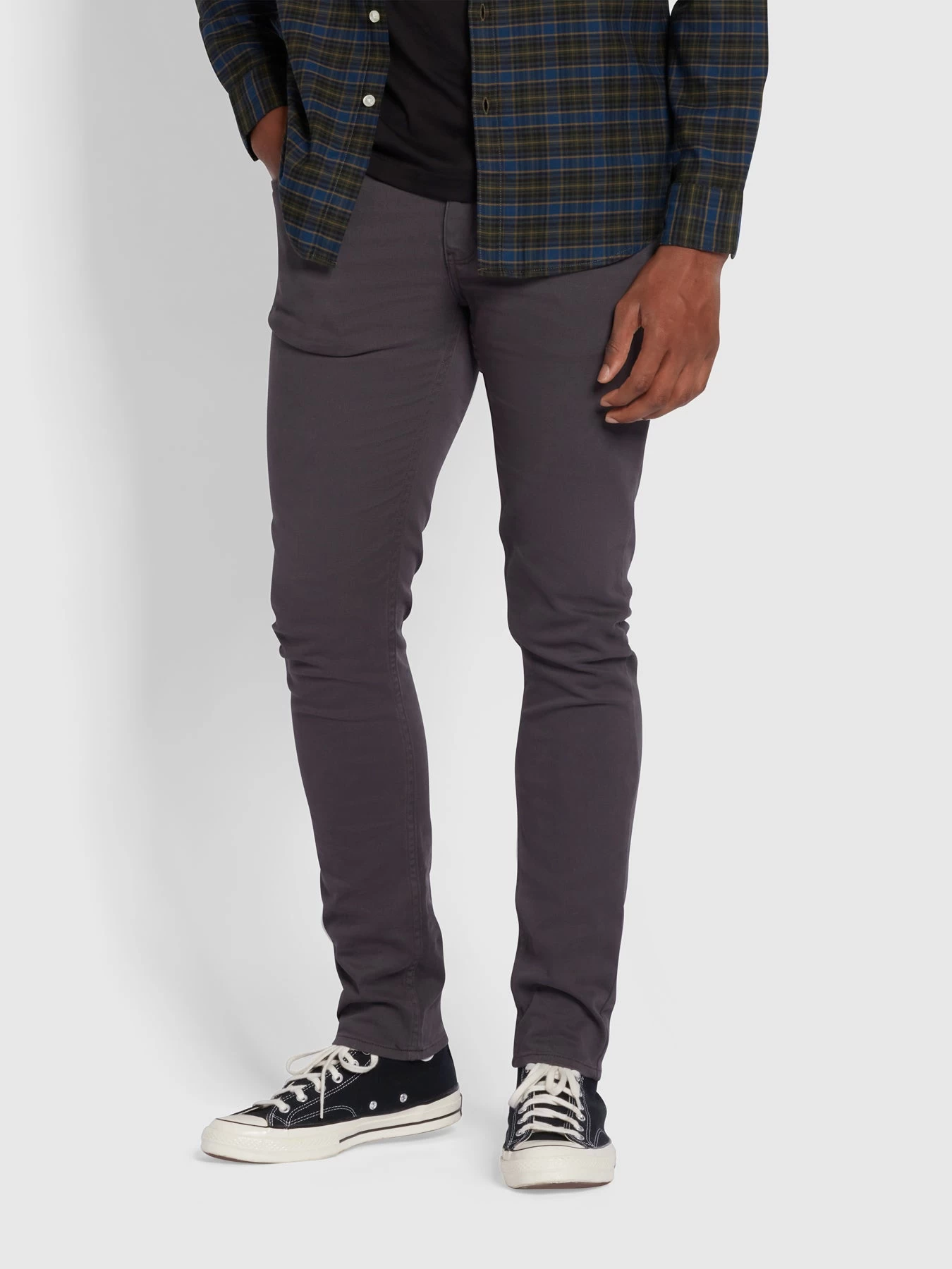Farah Drake Skinny Fit Cotton Twill Trousers In Charcoal