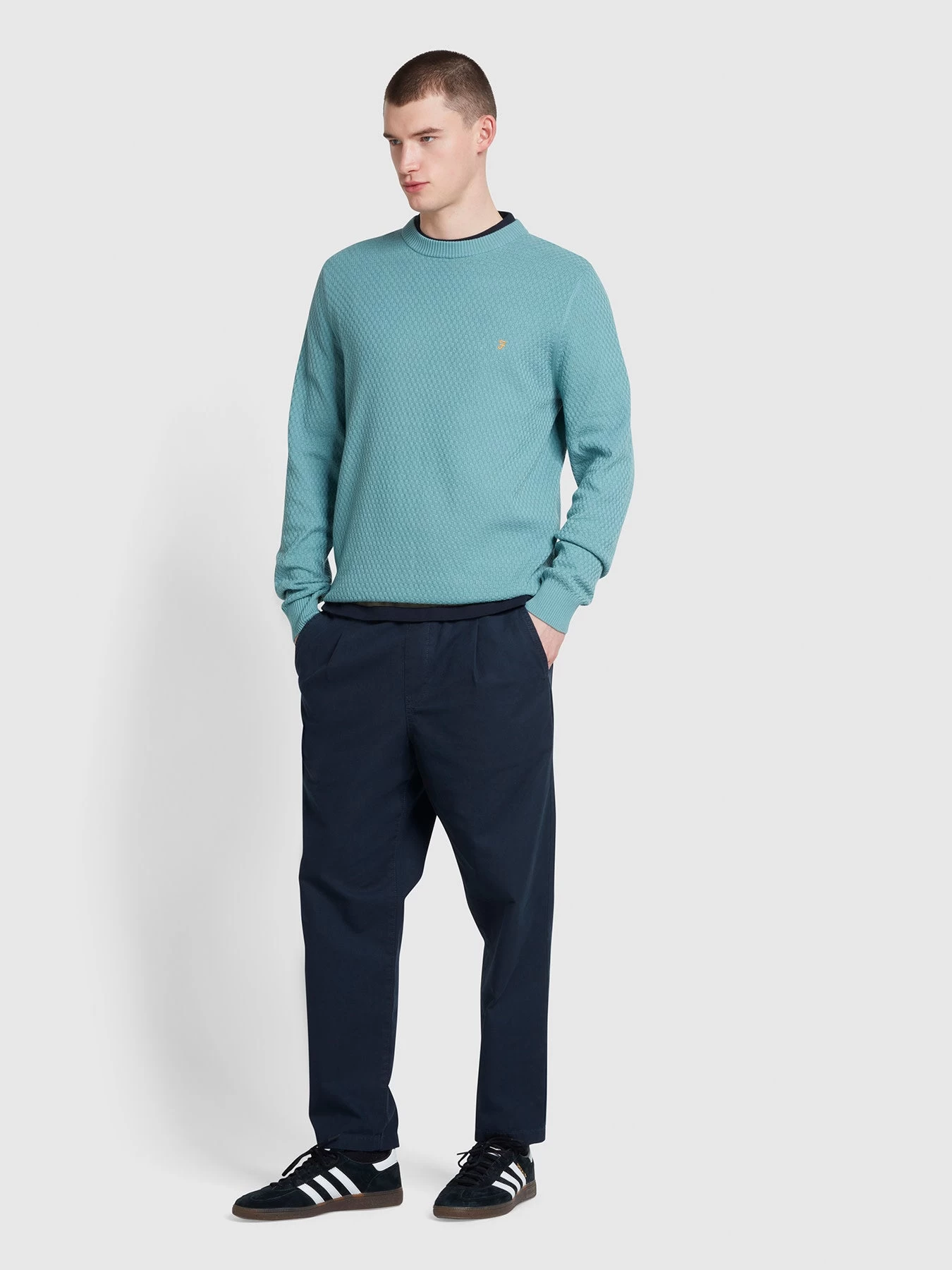 Crafted from 100% organic cotton, the Edwards Crew Neck Sweatshirt in Brook Blue offers a regular fit and ribbed details for ultimate comfort and style. With a textured fabrication, this sweatshirt is both durable and soft to the touch.