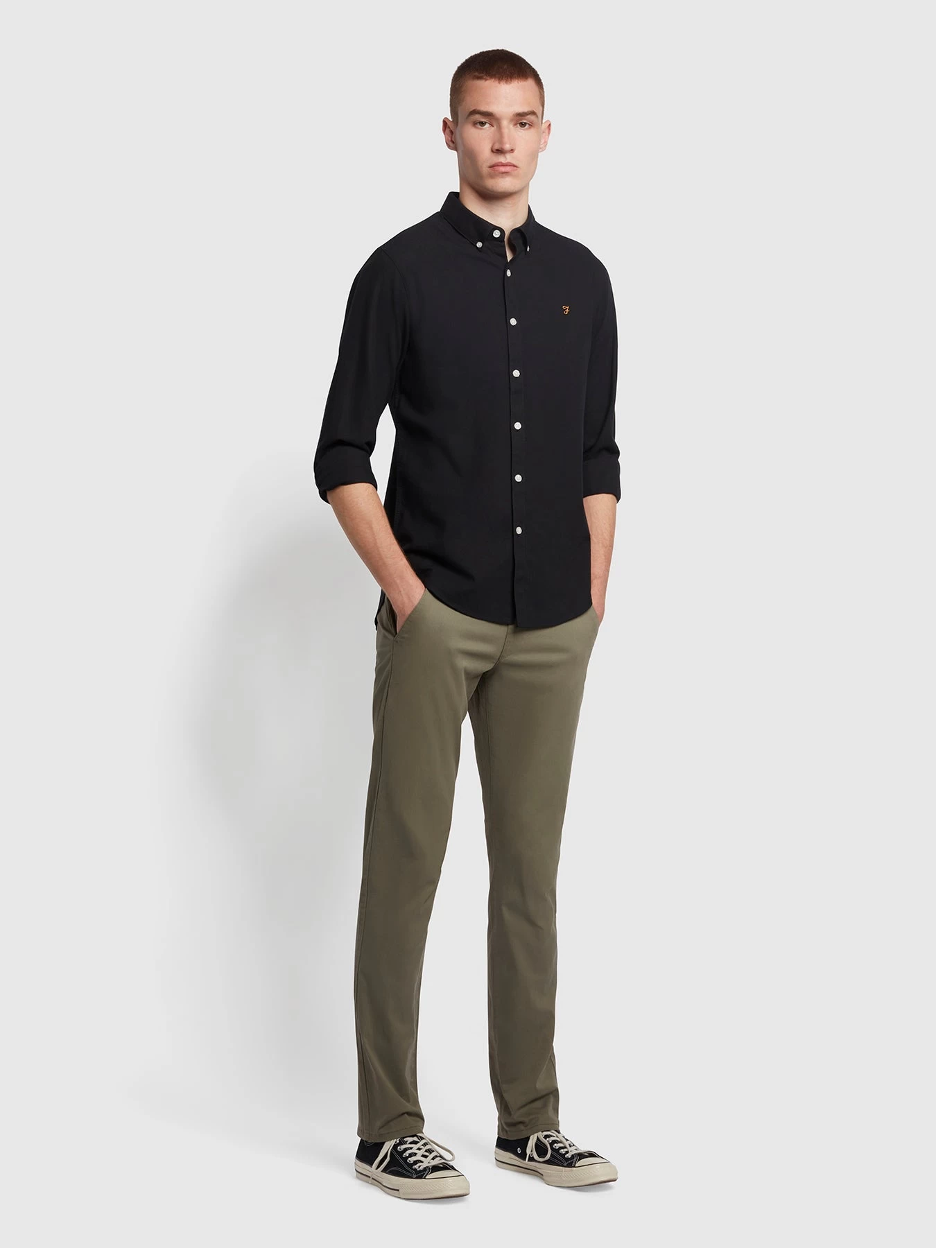 Farah Elm Regular Fit Organic Cotton Twill Chinos In Vintage Green