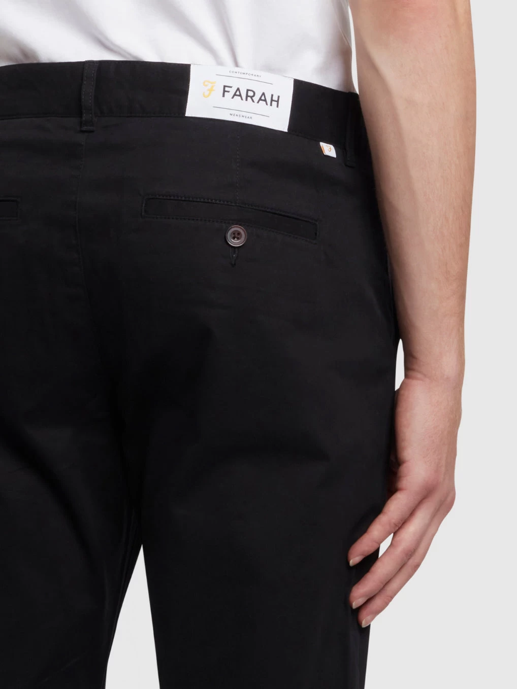 Designed to fit on the slim side of straight, the Elm Chinos provide a more regular fit that’s the straightest in our range. Crafted from a twill fabrication for comfort and durability, the chinos also feature pockets, belt loops and a zip/button fastening. The Elm chinos are finished with Original F tab inspired branding, synonomous with Farah’s exceptional quality since the 1950’s.