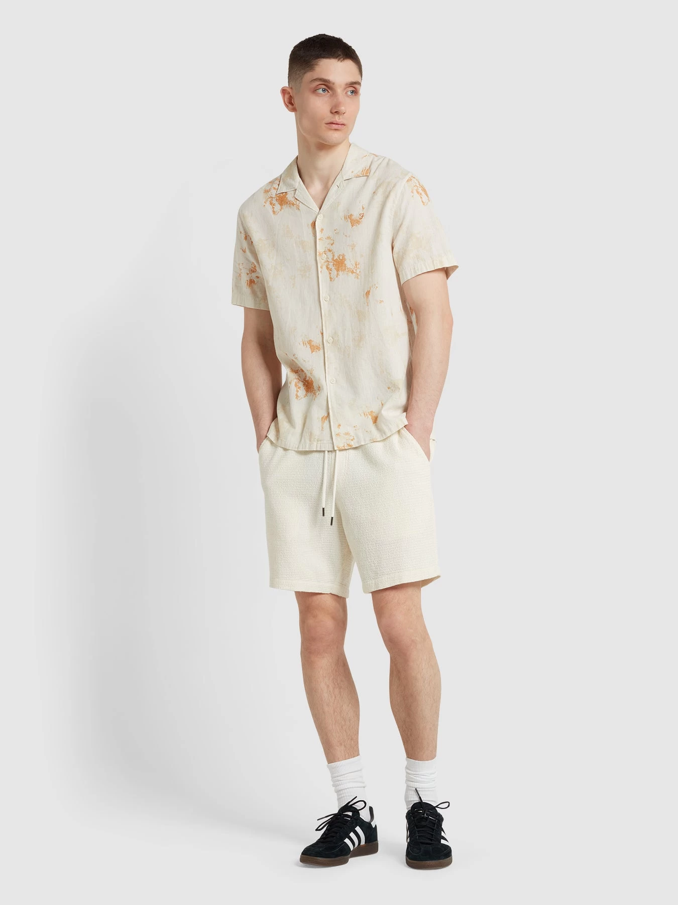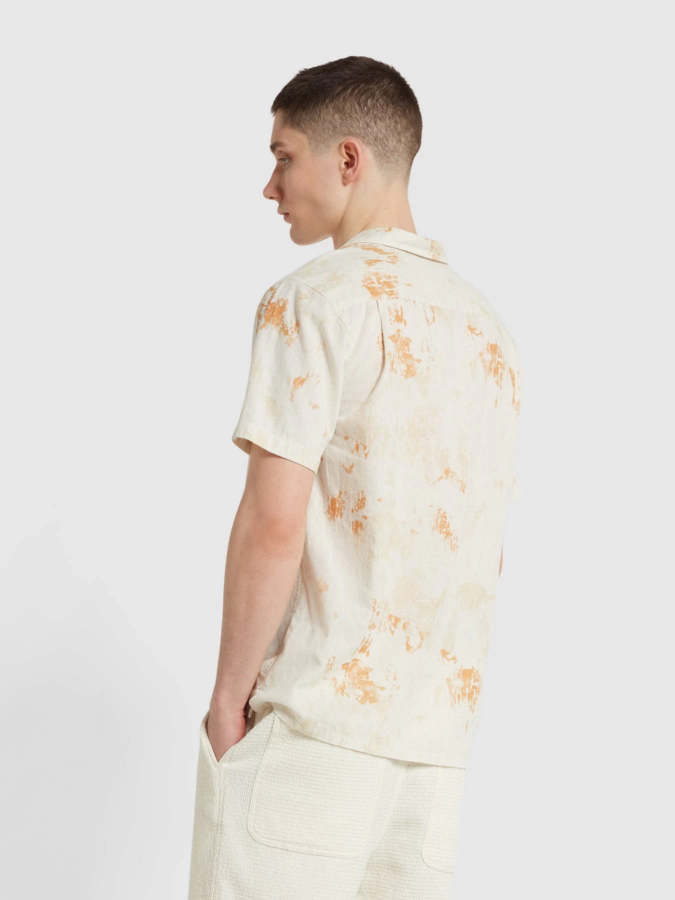 The Gabrielle Digital Print Short Sleeve Shirt in Fog is expertly crafted from a cotton and linen blend, providing a soft and breathable fabric. The casual fit and short sleeves make it ideal for everyday wear, while the revere collar offers a fashion-forward look.