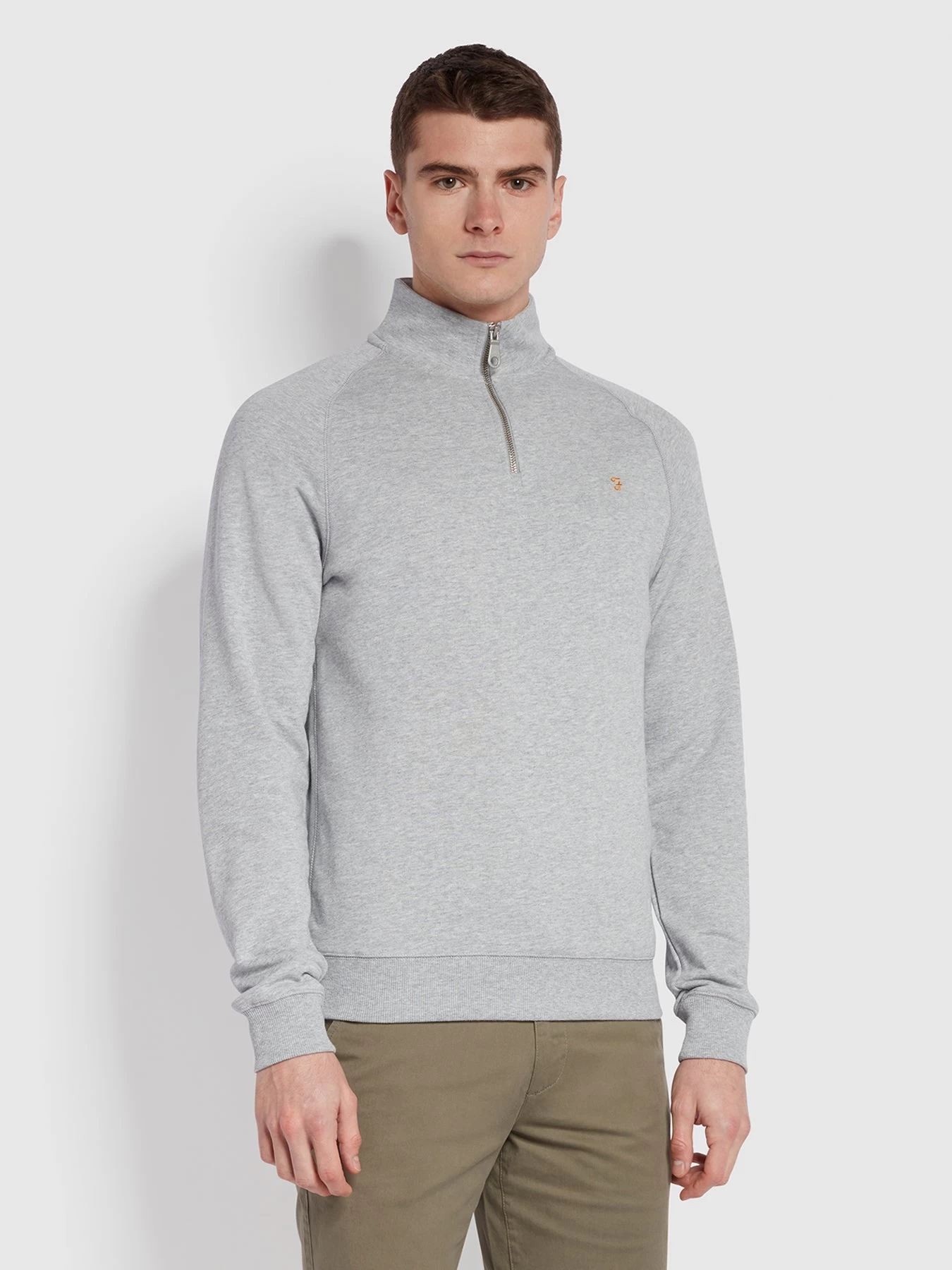 Made from 100% organic cotton, the Farah Jim sweatshirt features a quarter-zip set into a deep, ribbed-neck collar. With matching detailing on the hem and cuffs, the slim-fit sweatshirt is available in Black with our signature gold Farah logo at the left chest.