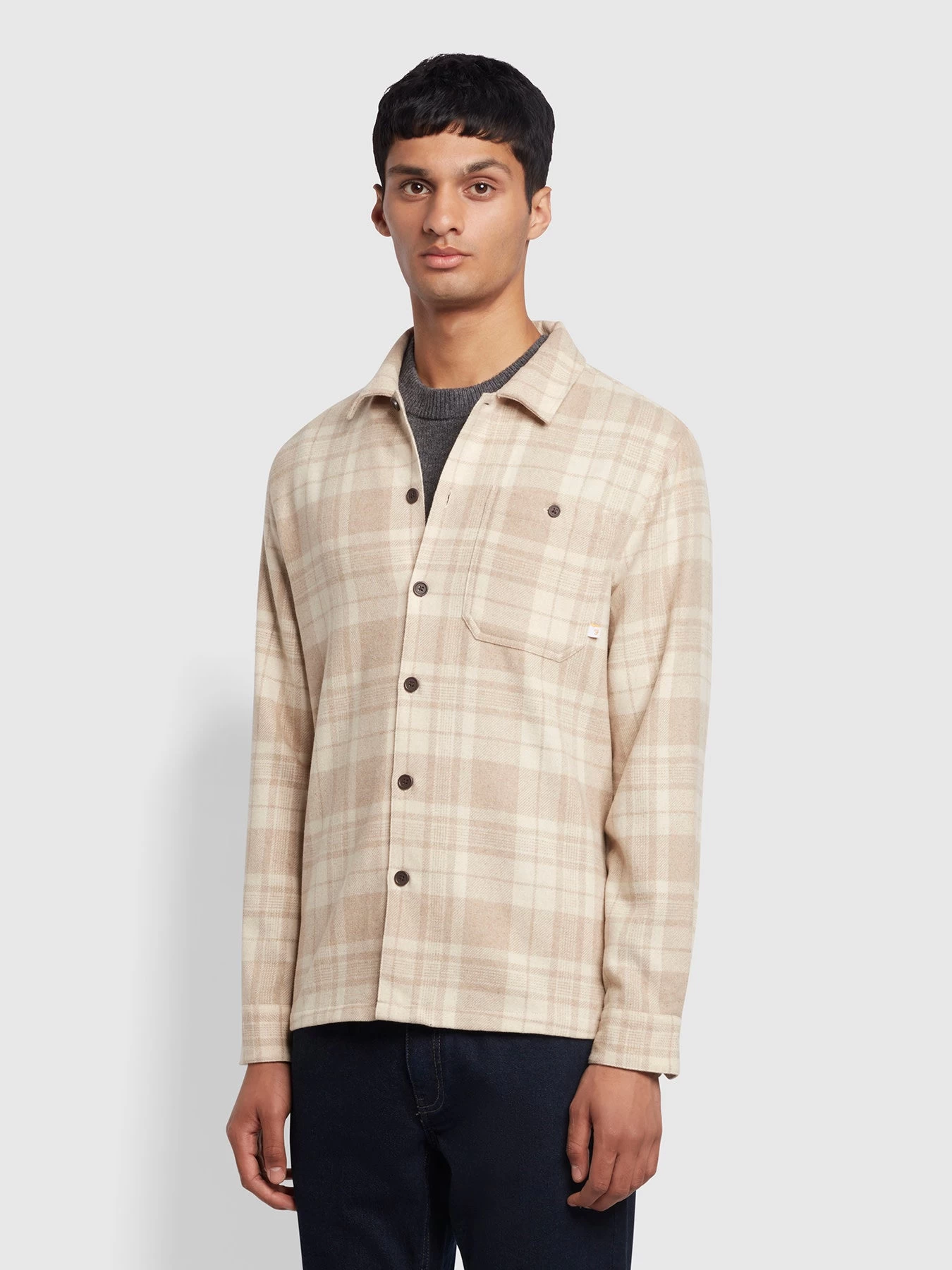 Farah Marks Relaxed Fit Check Overshirt In Straw Beige