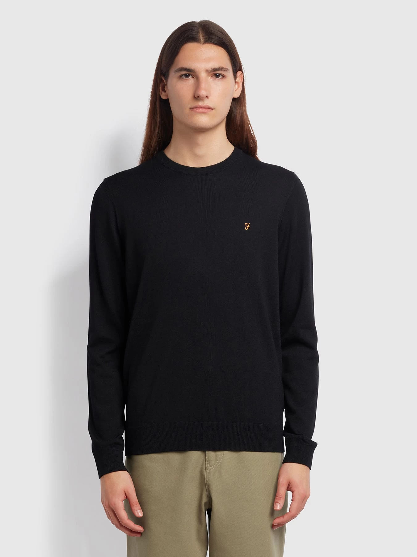Farah Mullen Merino Wool Crew Neck Jumper In Black