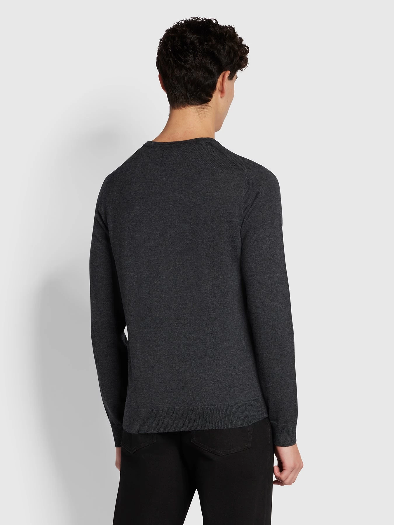 Farah Mullen Slim Fit Merino Wool Crew Neck Jumper In Charcoal