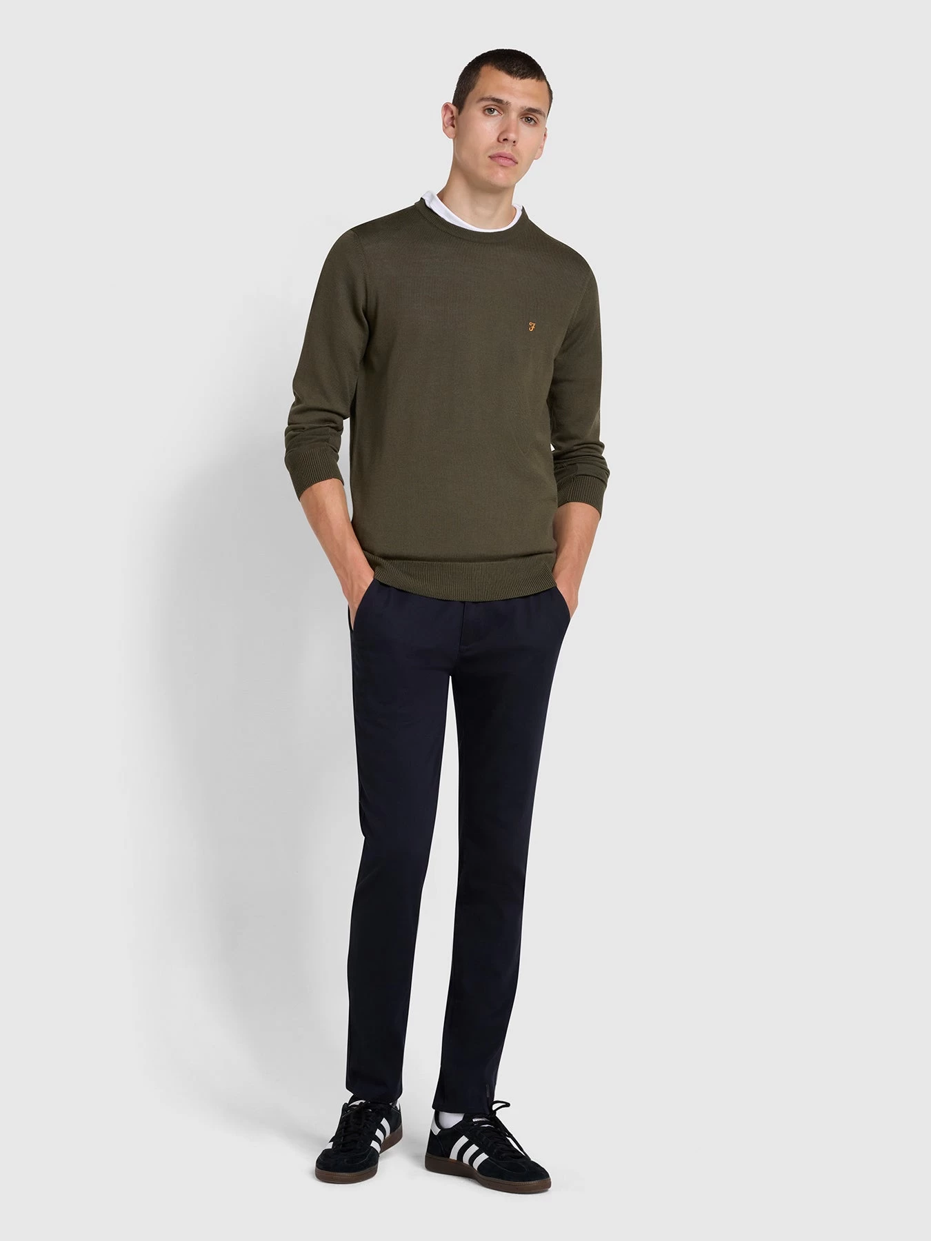 Farah Mullen Slim Fit Merino Wool Crew Neck Jumper In Evergreen