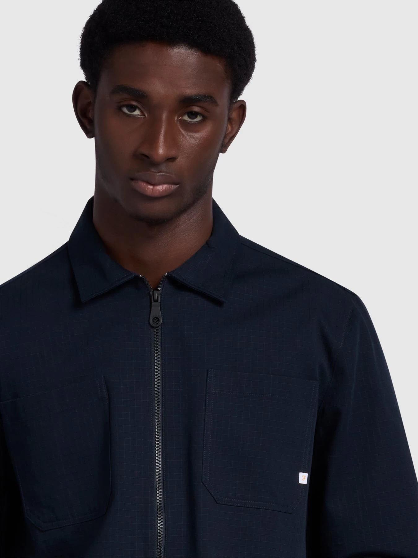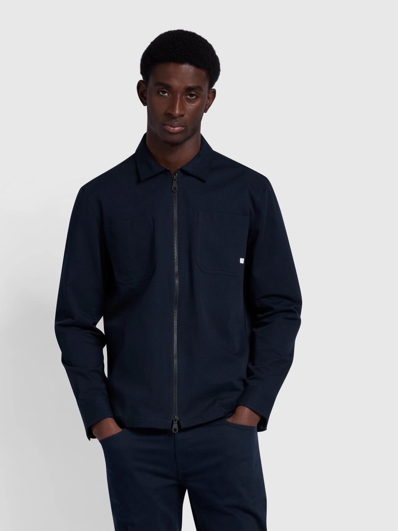 Farah Olmes Casual Fit Long Sleeve Zipped Overshirt In True Navy