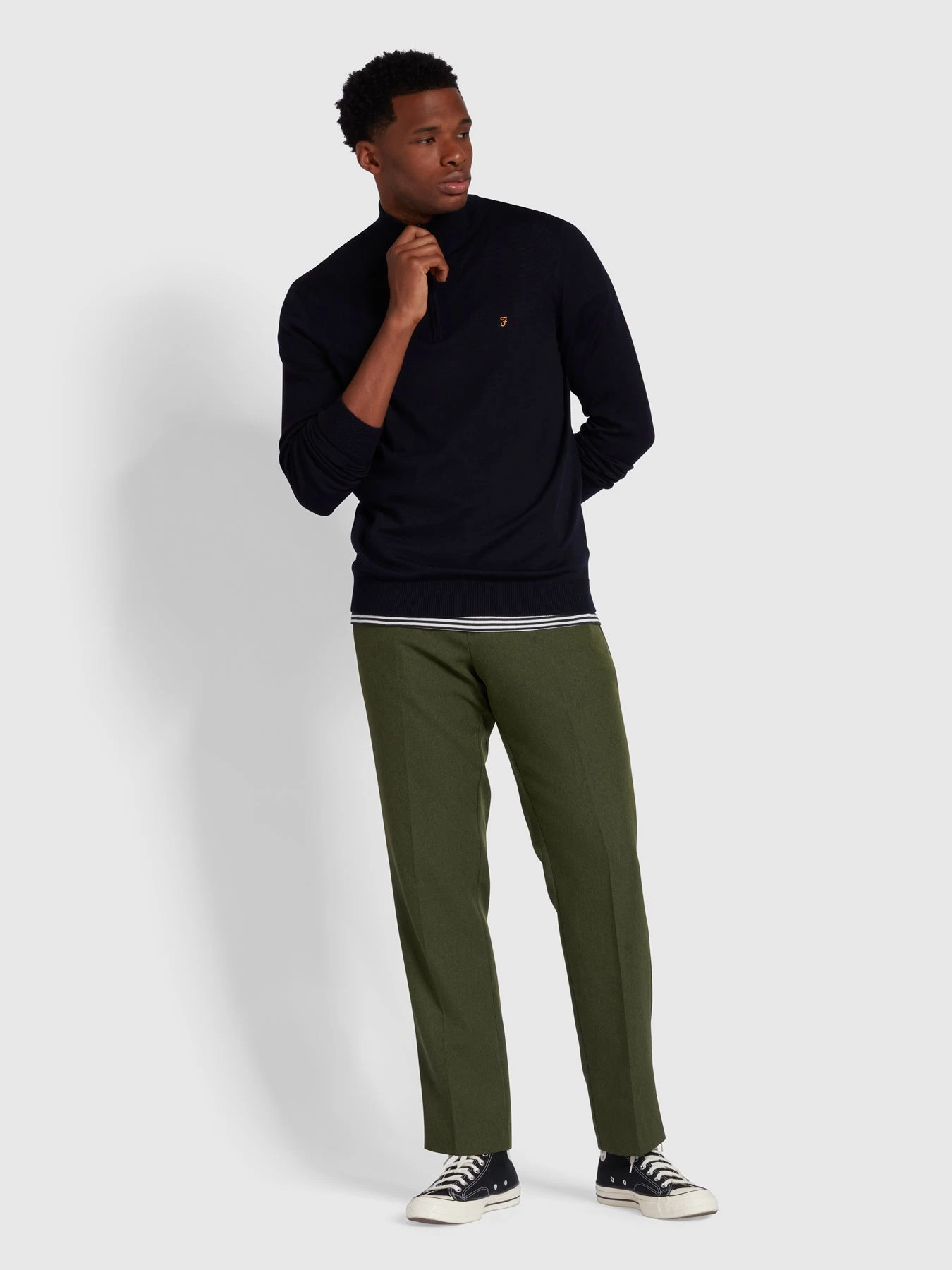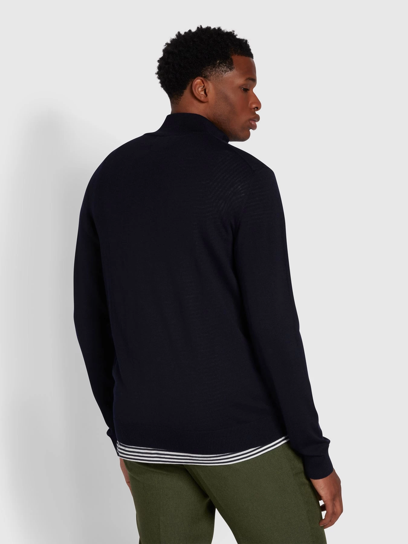 Farah Redchurch Merino Wool Quarter Zip Jumper In True Navy