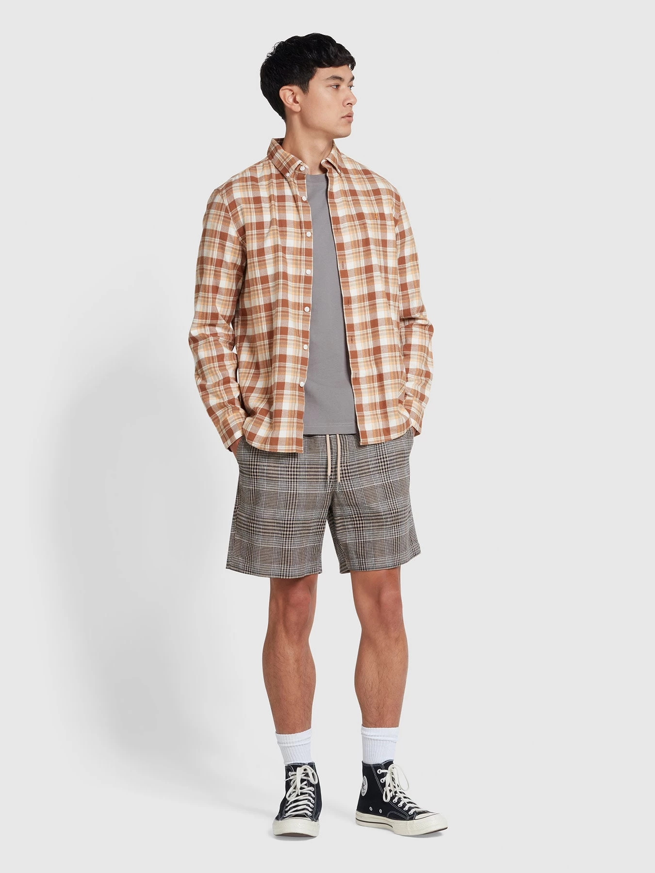 Crafted with a blend of linen and cotton, these shorts offer superior breathability and comfort. Designed with convenient side and back pockets, a drawstring waistband, and the iconic Farah tab on the back pocket, these shorts are both functional and fashion-forward.
