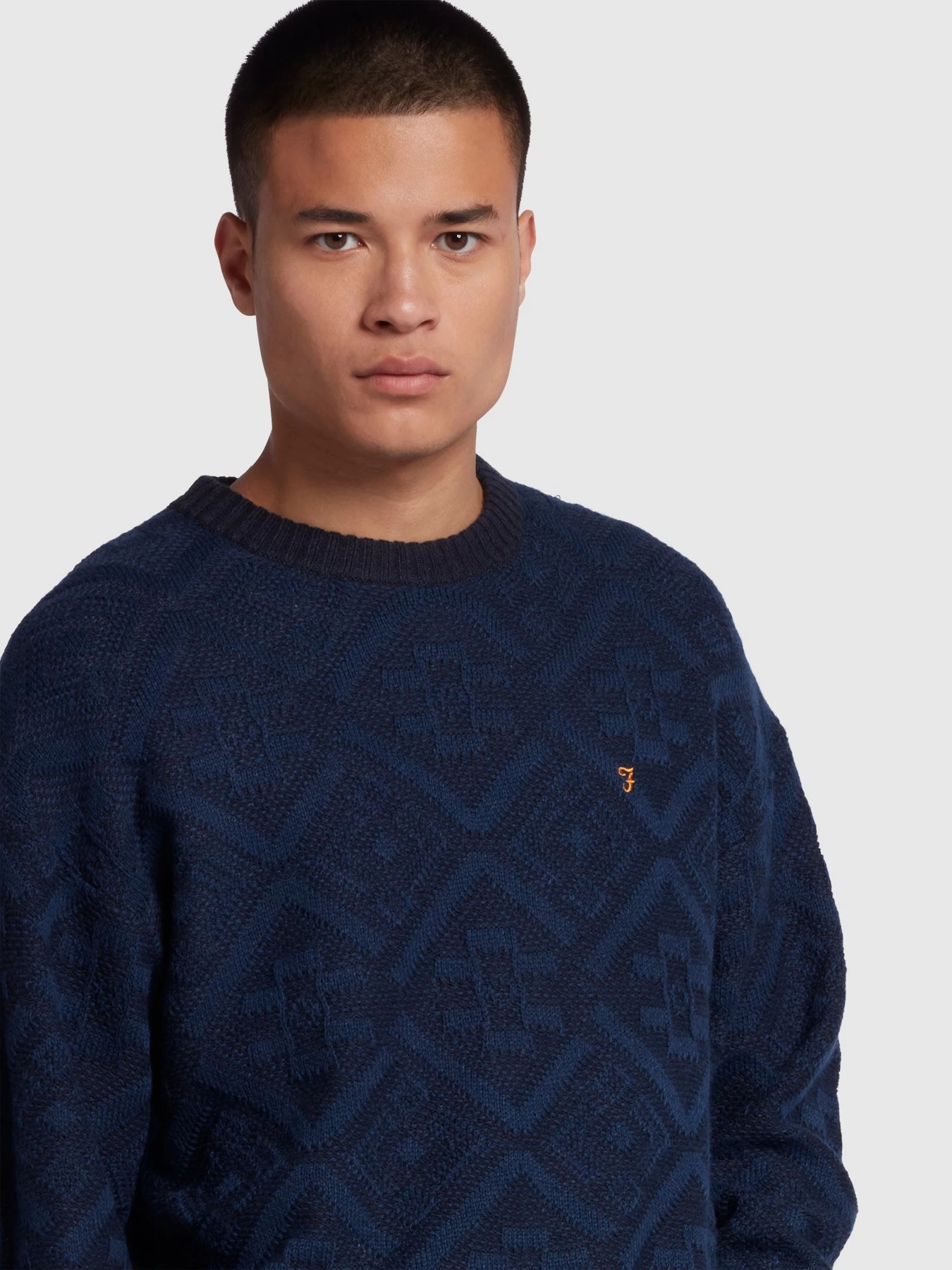 Farah Roma Archive Textured Knit Crew Neck Sweater In True Navy