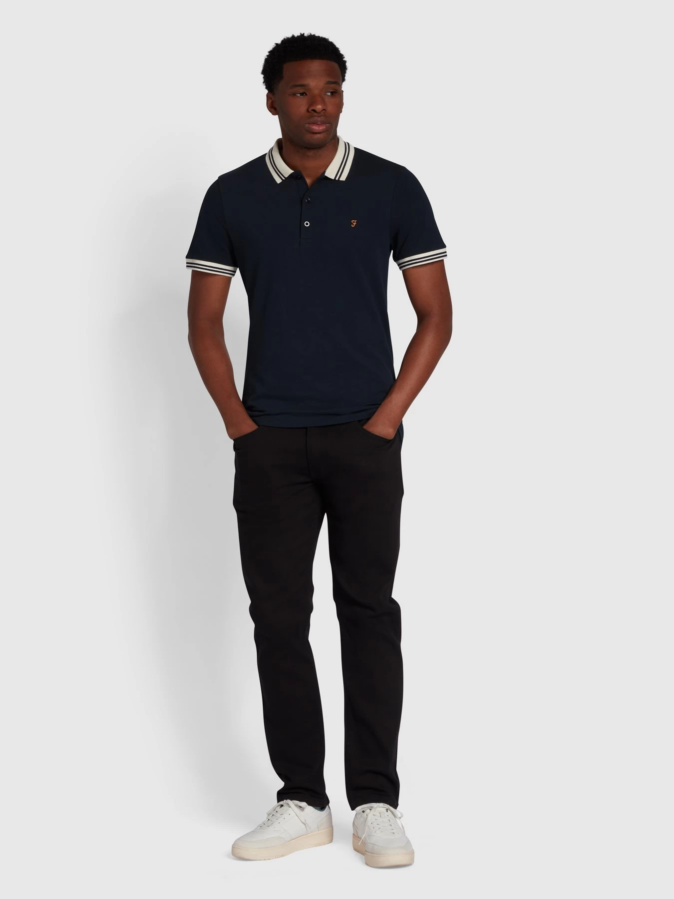 Showcasing a contrast-tipped, ribbed collar and cuffs, the Farah Stanton polo shirt is a modern-meets-retro piece. A short sleeve, slim-fit design crafted in a classic piqué from 100% organic cotton, it has our signature gold Farah logo at the left chest.