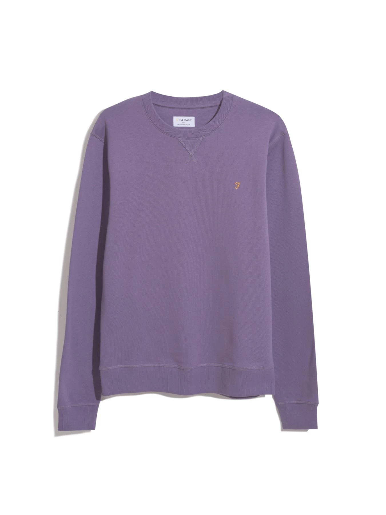 Farah Tim Organic Cotton Crew Neck Sweatshirt In Slate Purple