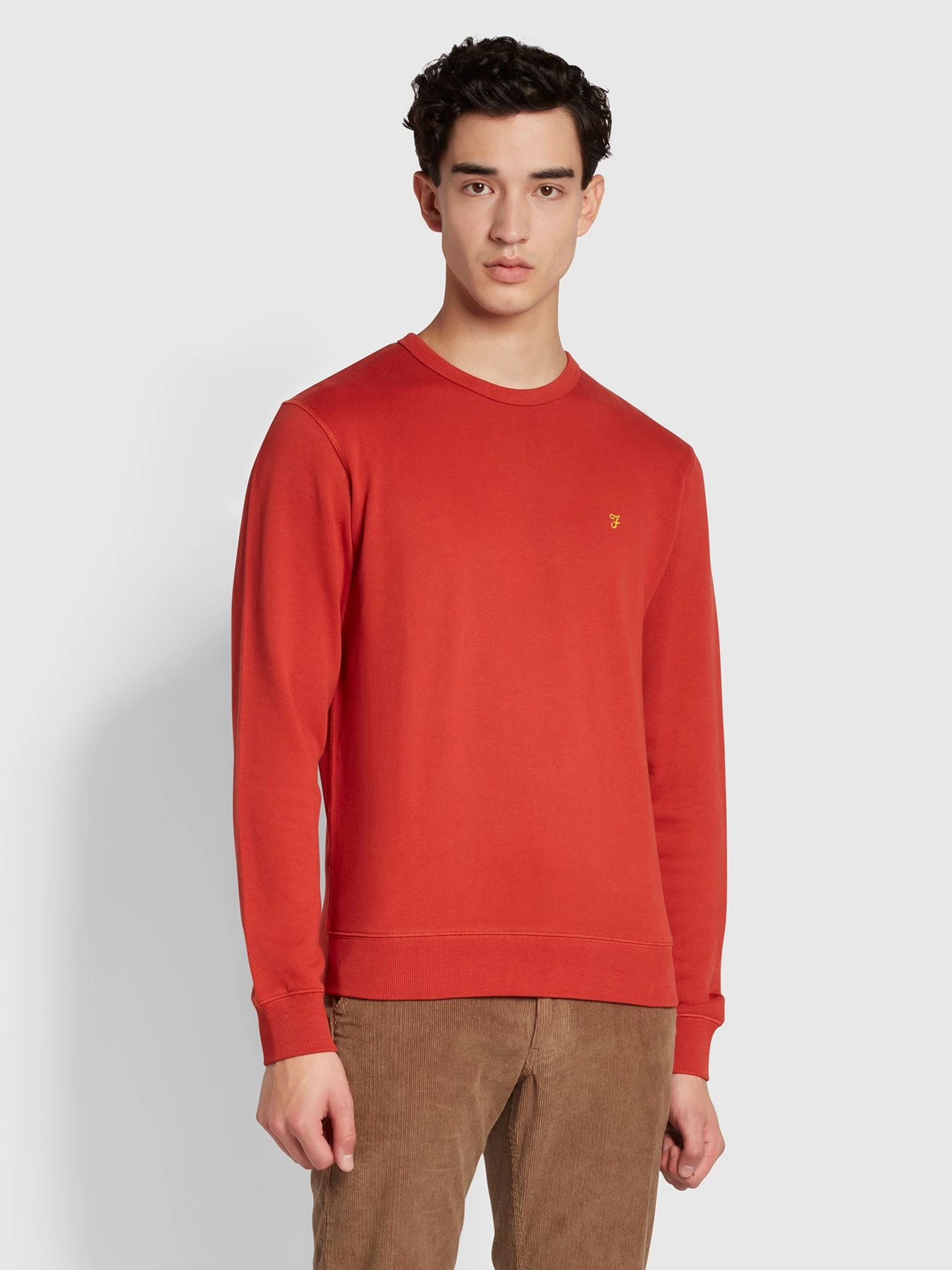 A long sleeve, slim-fit, crew neck, the Farah Tim sweatshirt comes in a timeless Crimson and is made from 100% organic cotton. Detailing includes a ribbed collar, hem and cuffs and our signature gold Farah logo at the left chest.
