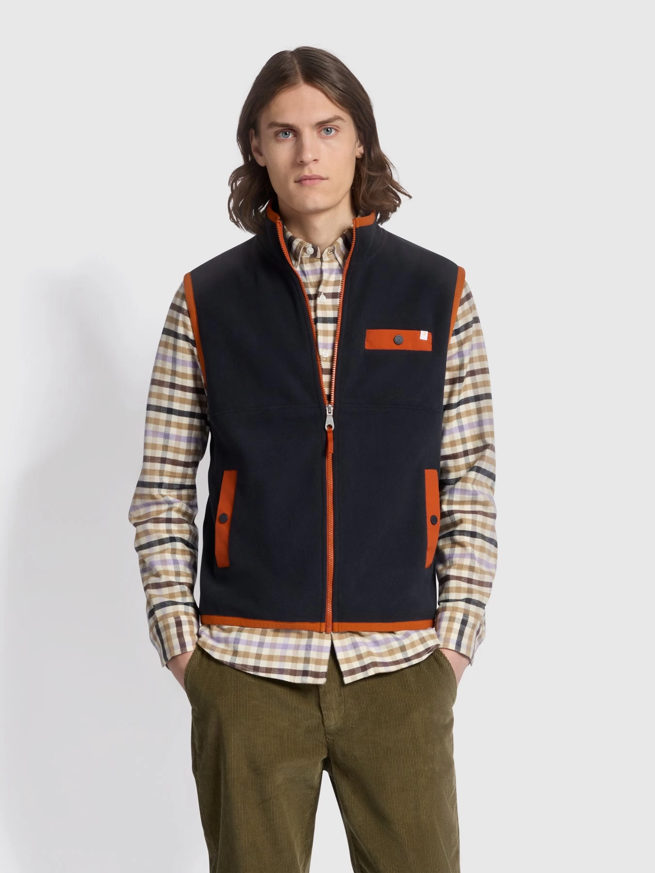 Farah Vernazza Regular Fit Full Zip Fleece Gilet In True Navy