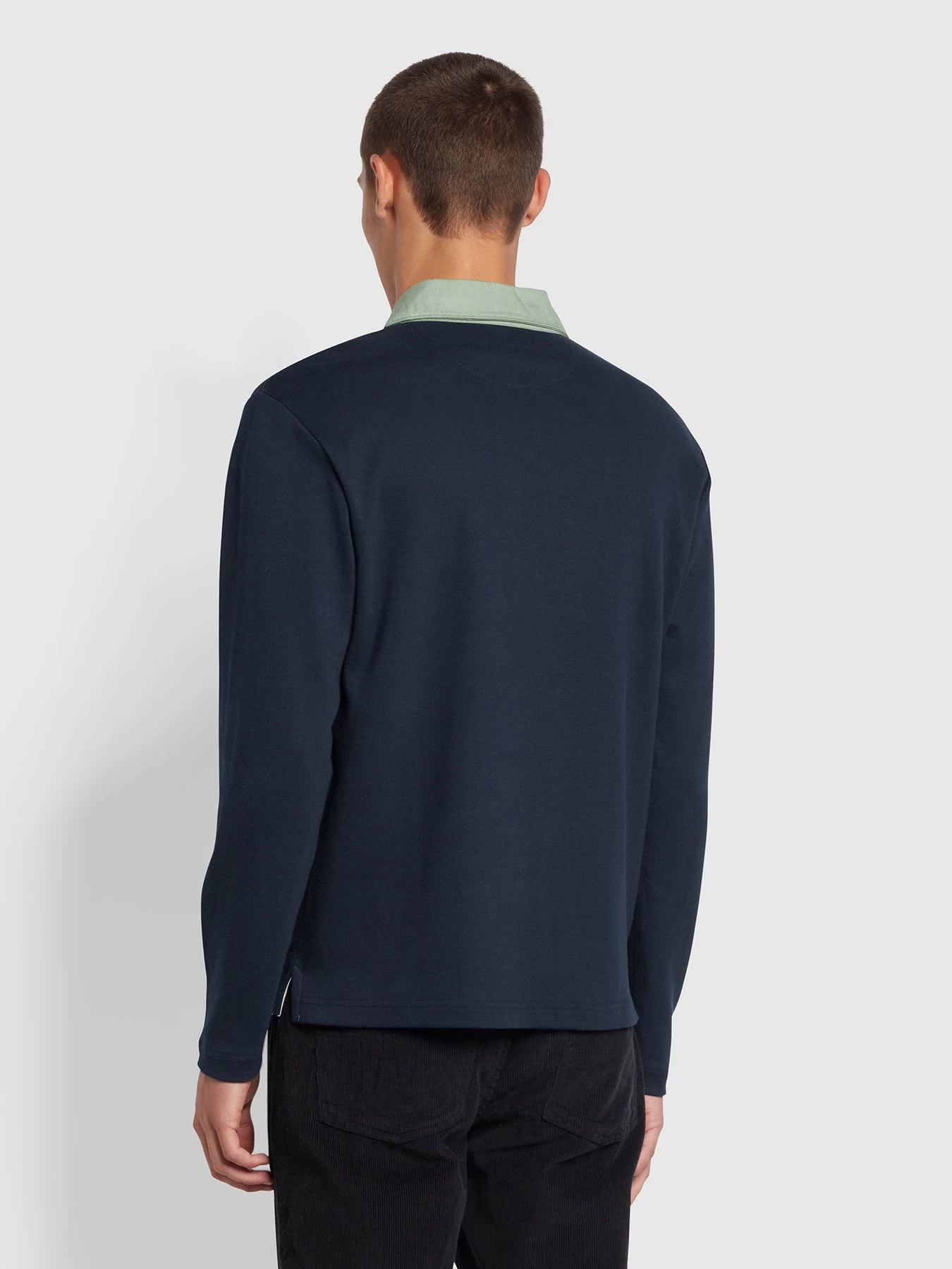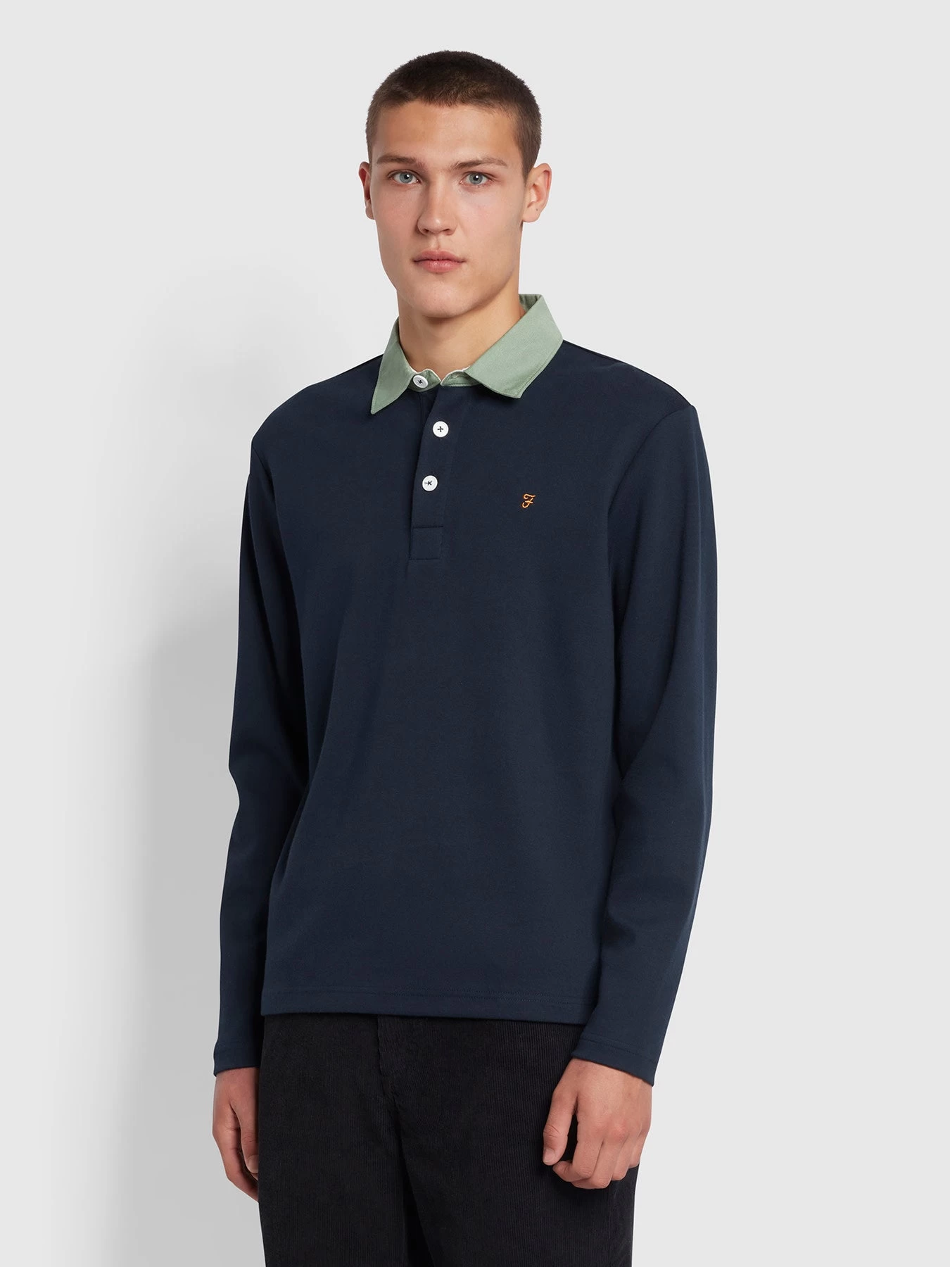 Farah Ward Regular Fit Organic Cotton Rugby Shirt In True Navy