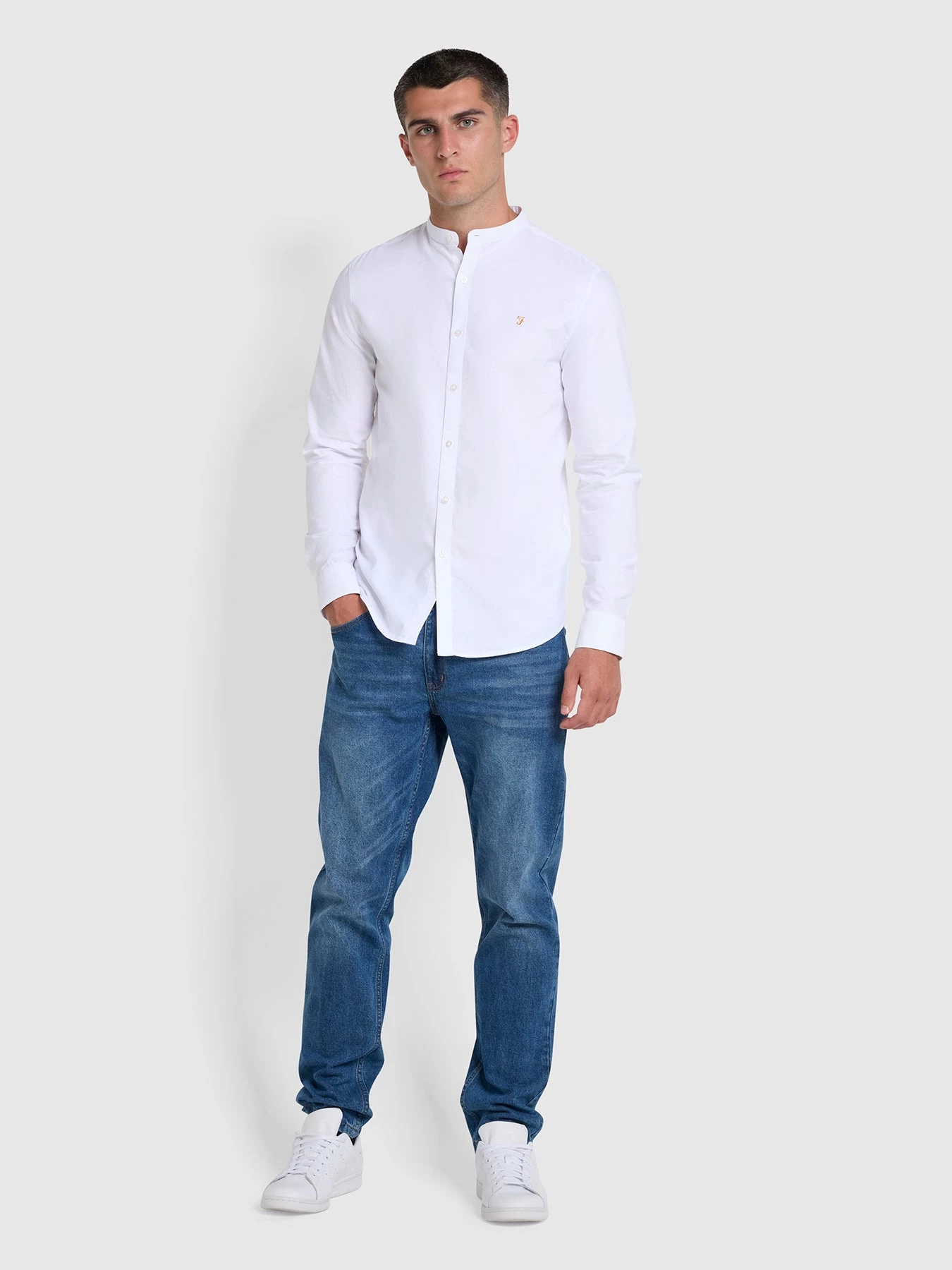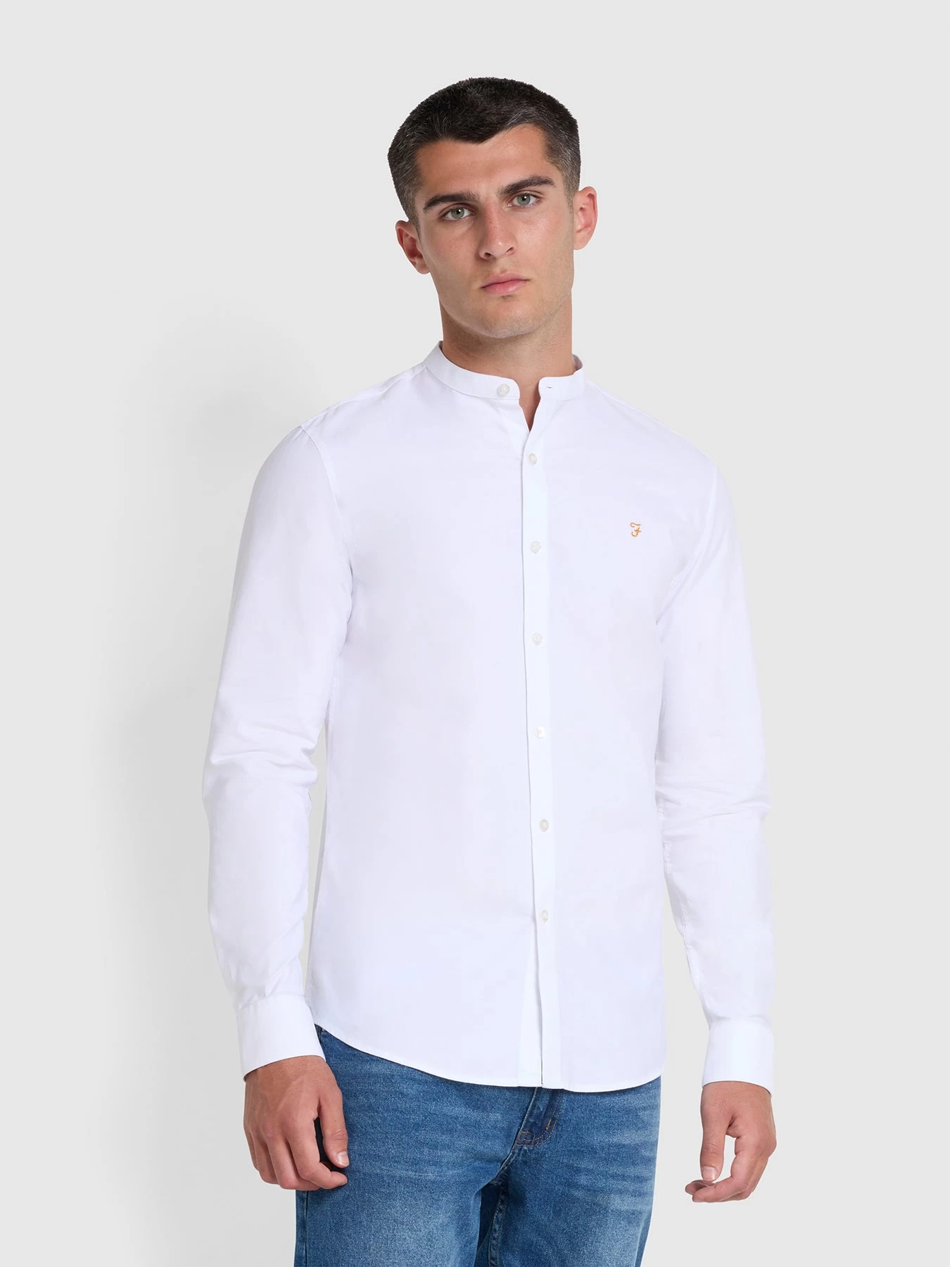 Every man needs a high-quality, go-to shirt in his wardrobe that pairs perfectly with everything. This white grandad shirt from Farah can be styled up for smart office days and special occasions with Farah trousers and brogues, or dressed down for evenings and weekends – opt for jeans and boots with a jacket or jumper layered on top.