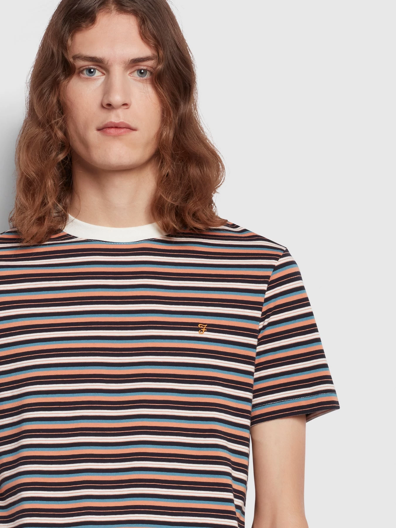 Farah Zephyr Slim Fit Stripe Short Sleeve T-Shirt In Mandarin