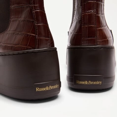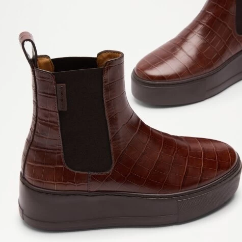 Exotic crocodile patterns and casual styling define Park Way, our Chelsea boot sneaker hybrid. This glamorous design is perfect for casual or event-ready looks where you want to make a bold statement. Expertly crafted in Portugal, the piece is made from a chocolate-hued drench leather printed with a beguiling crocodile-skin pattern. It also features elasticated side inserts and leather pull tabs for a seamless slip-on fit, as well as a sporty flatform sole.
