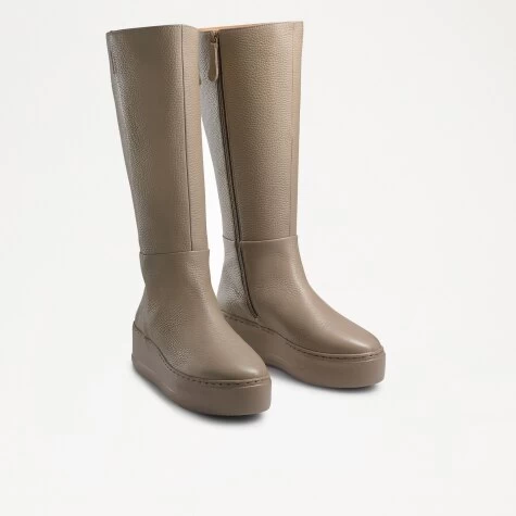 Set on the sole of our bestselling Park Up sneaker, flatform boot style Park High fuses the elegance of a long boot with the comfort of a sneaker. Crafted in Portugal in a solar panelled sustainably conscious factory from soft grained taupe-hued leather, this sleek silhouette features a practical inside zip and lightweight sole for ease of wear. Boasting a leg-lengthening flatform and sporty finish, this new take on the classic boot is a new season essential.