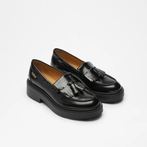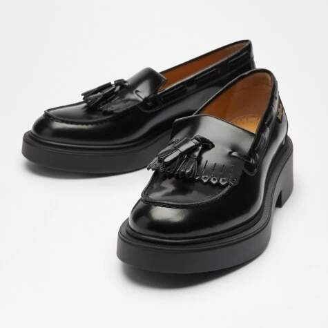 Oversized styling meets new wave grunge in Piccadilly, our tassel fringe chunky loafer. Made in Italy from lustrous black calf leather, this classic but statement design is inspired by our iconic loafer looks, but with a refreshed update. Set on a bold rubber sole influenced by rock ‘n’ roll creepers, the style features a classic tassel fringe and leather rope detailing. It comes with a fabric logo feature and a leather-lined insole.